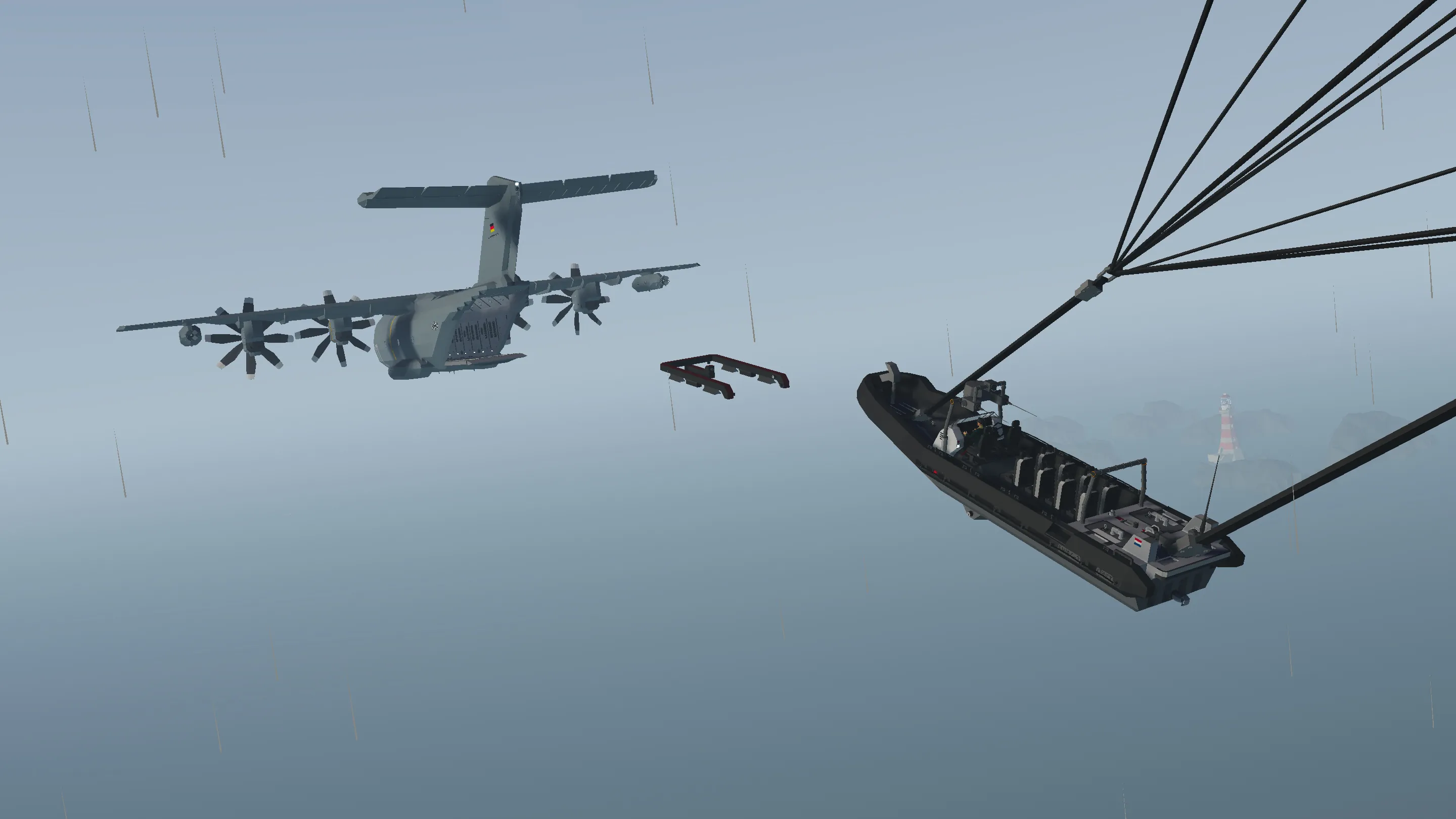 This means you can be [b]ON[/b] the Vehicles (or Cargo) that you are air-dropping, and let the Plane fly away while you drive your air-dropped Vehicle.