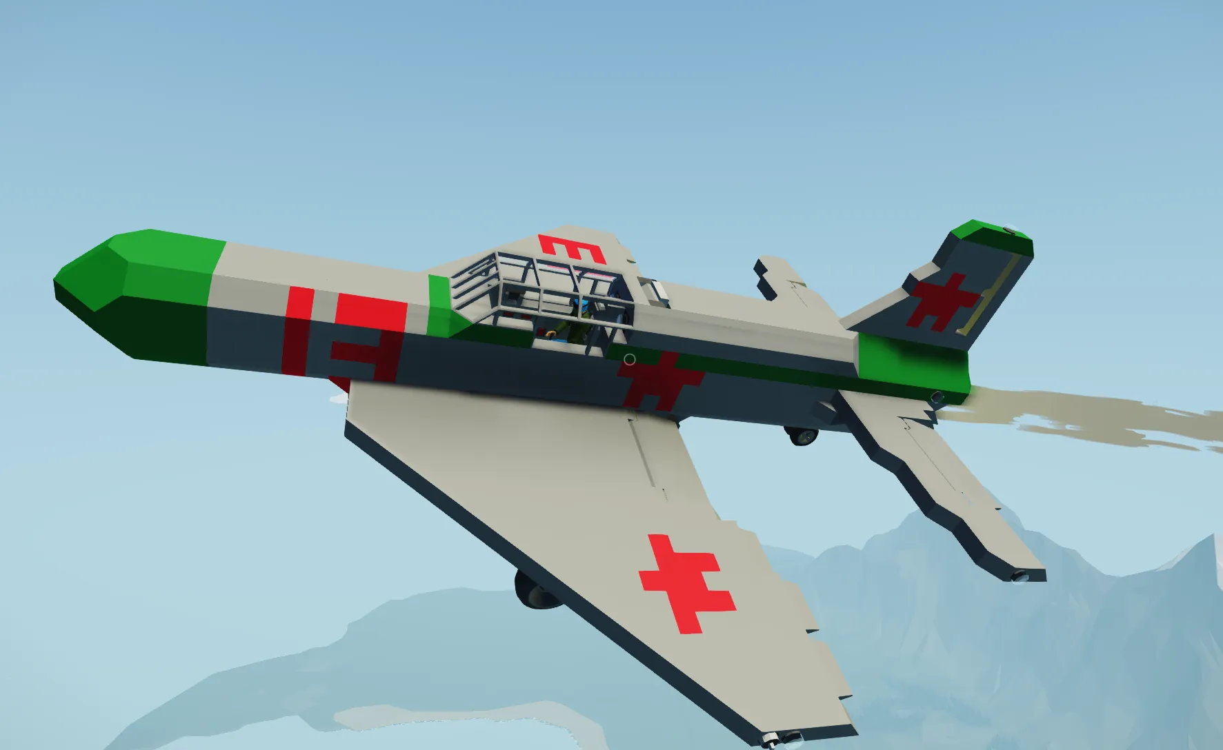this is another imaginary project this is the Su13P jet variant i took the main su13 and turned into a jet around mid october and i think its good to go for now only big problems id want to fix in the future is the extra flares,fuel capacity and maybe retractable gear. other than that i think its ready this variant is MUCH better than the main its much more stable than the regular su13 ofc goes faster and has some extra changes in the cockpit,wings are angles further back for aerodynamics and a camera that looks straight down was goin to put in the front but still considering it.