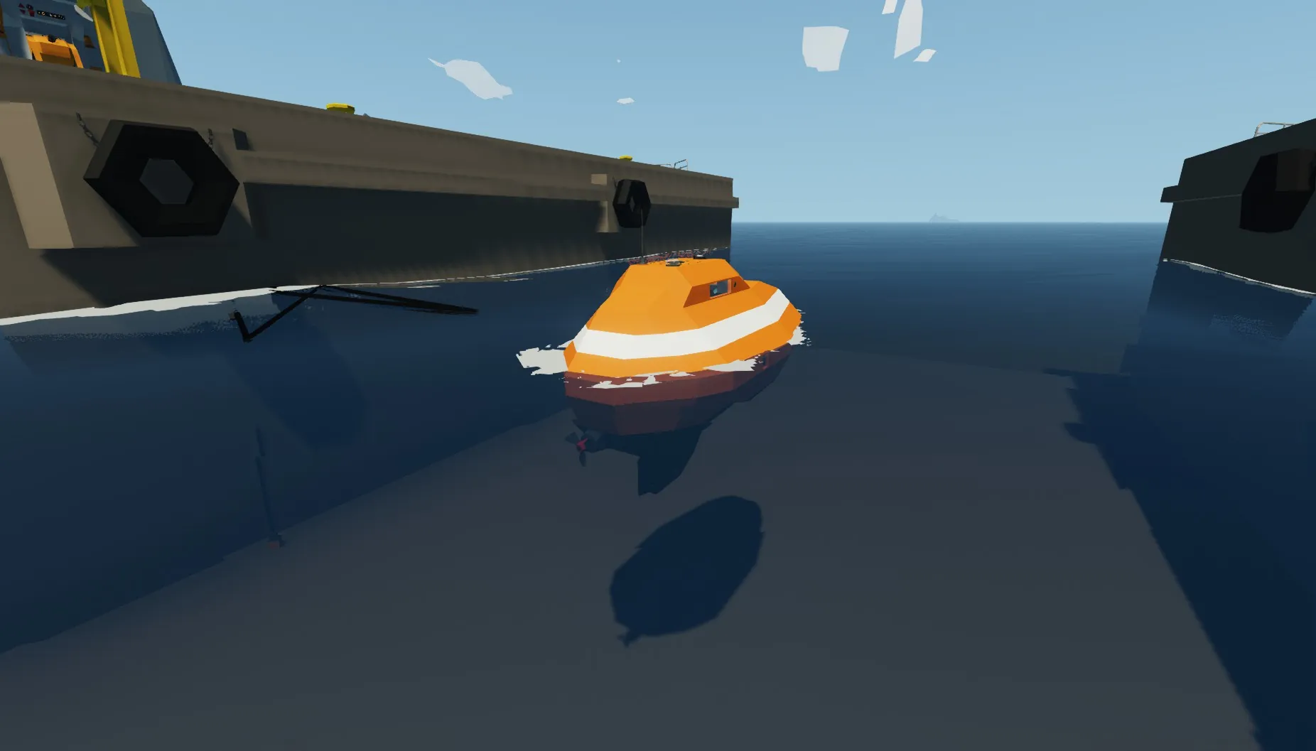 This is a life boat like on a modern cargo ship that slides off the back/side.