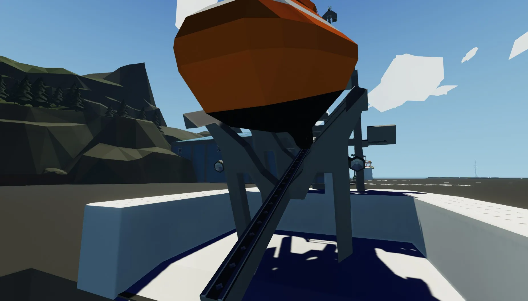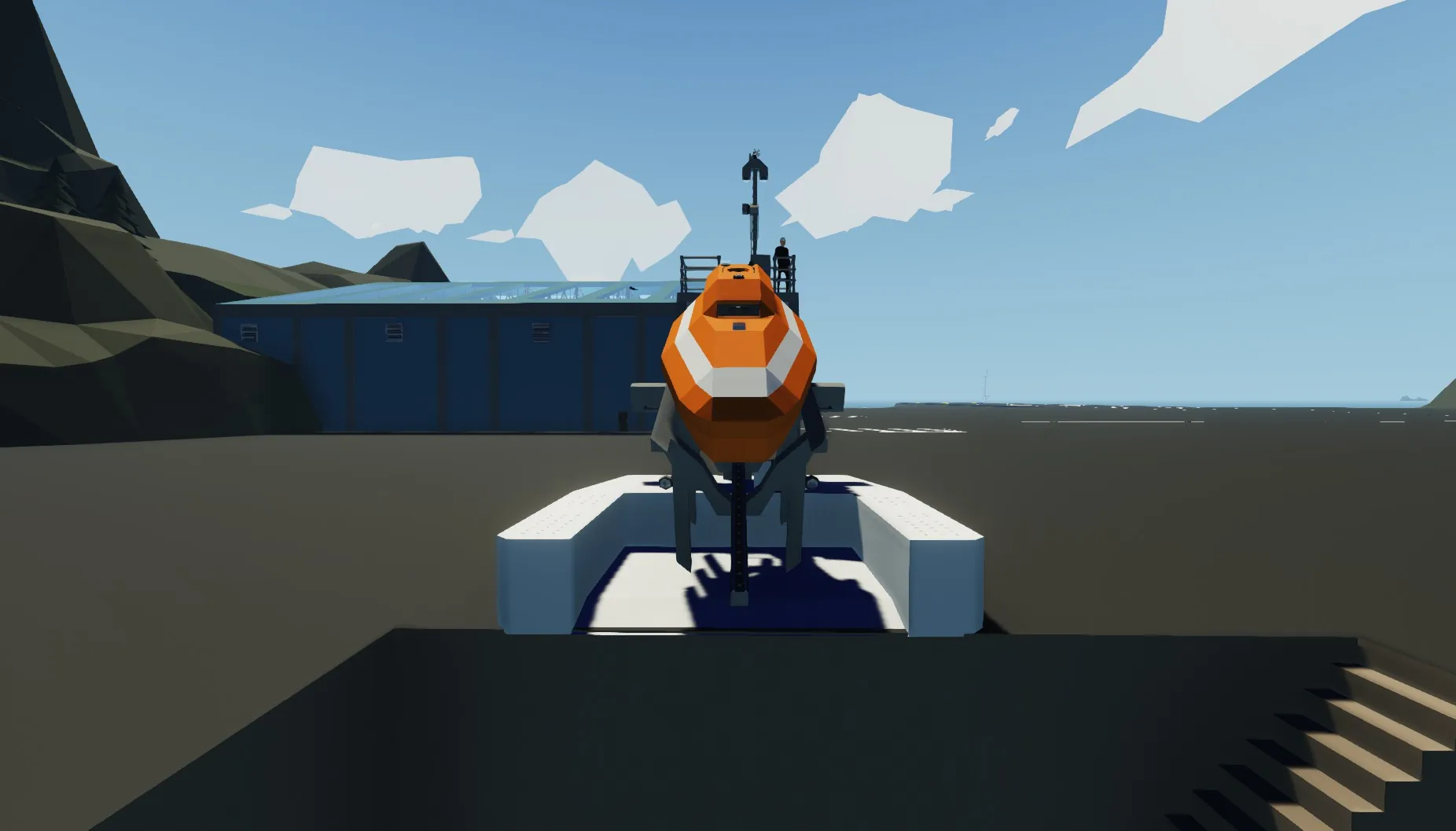 2. Go to end of gang walk and enter the life boat.