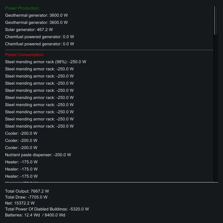 After being annoyed at trying to figure out why I needed so many geothermal generators even after turning off everything in my colony, I made this.