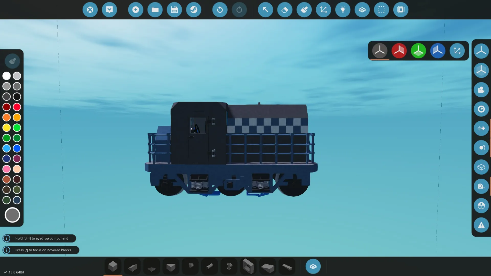 I made this while bored. It's an EMD-styled locomotive, despite being 22.125 ft. (5 3/4 meters) long. It's untested, and probably not even aligned with the rails. I have no idea what happens if you drive this.
