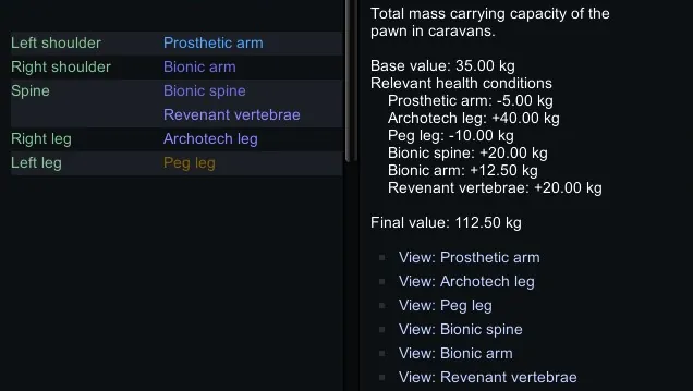 Adds Extra pawn inventory and caravan carrying capacity from Bionics.