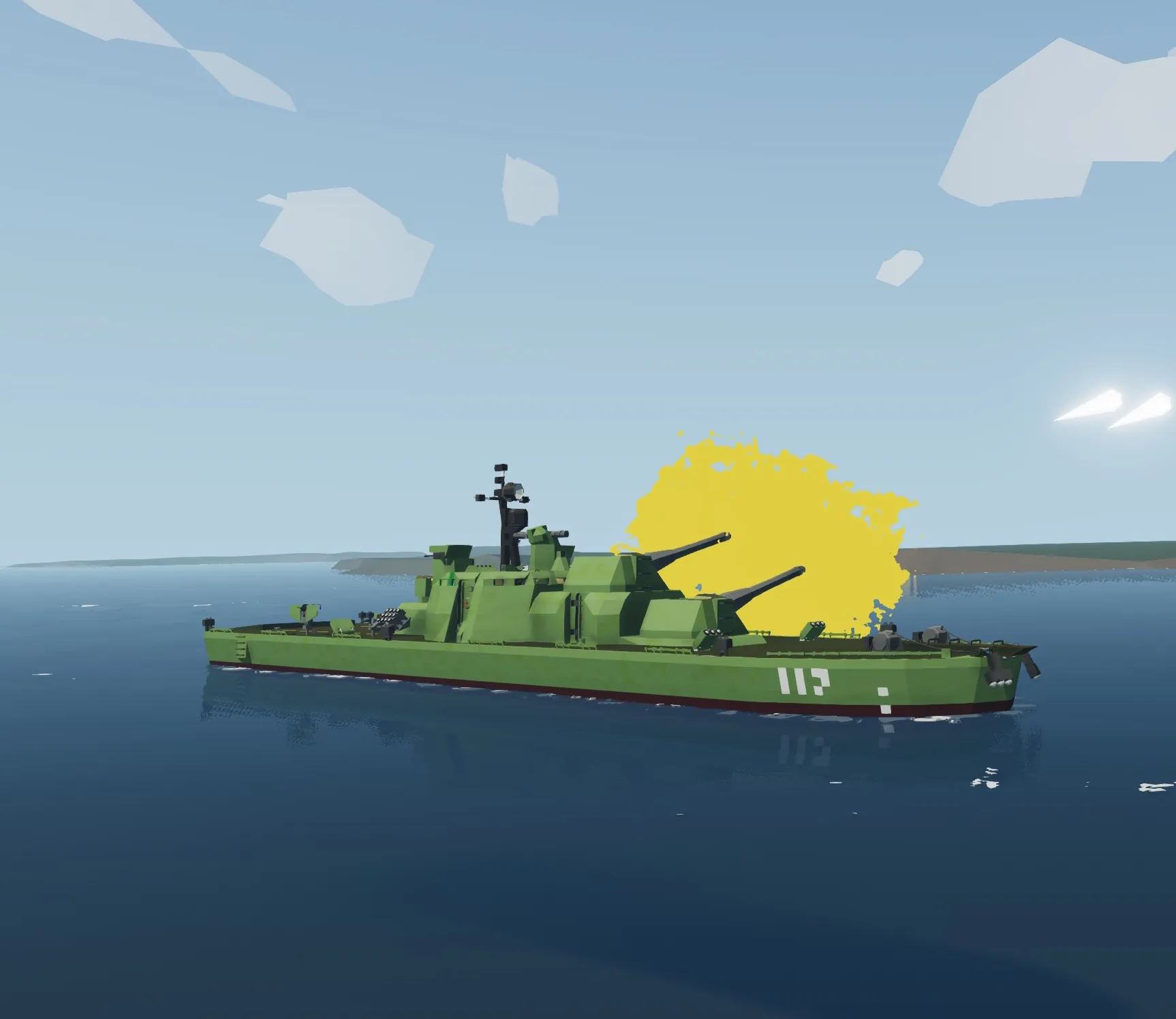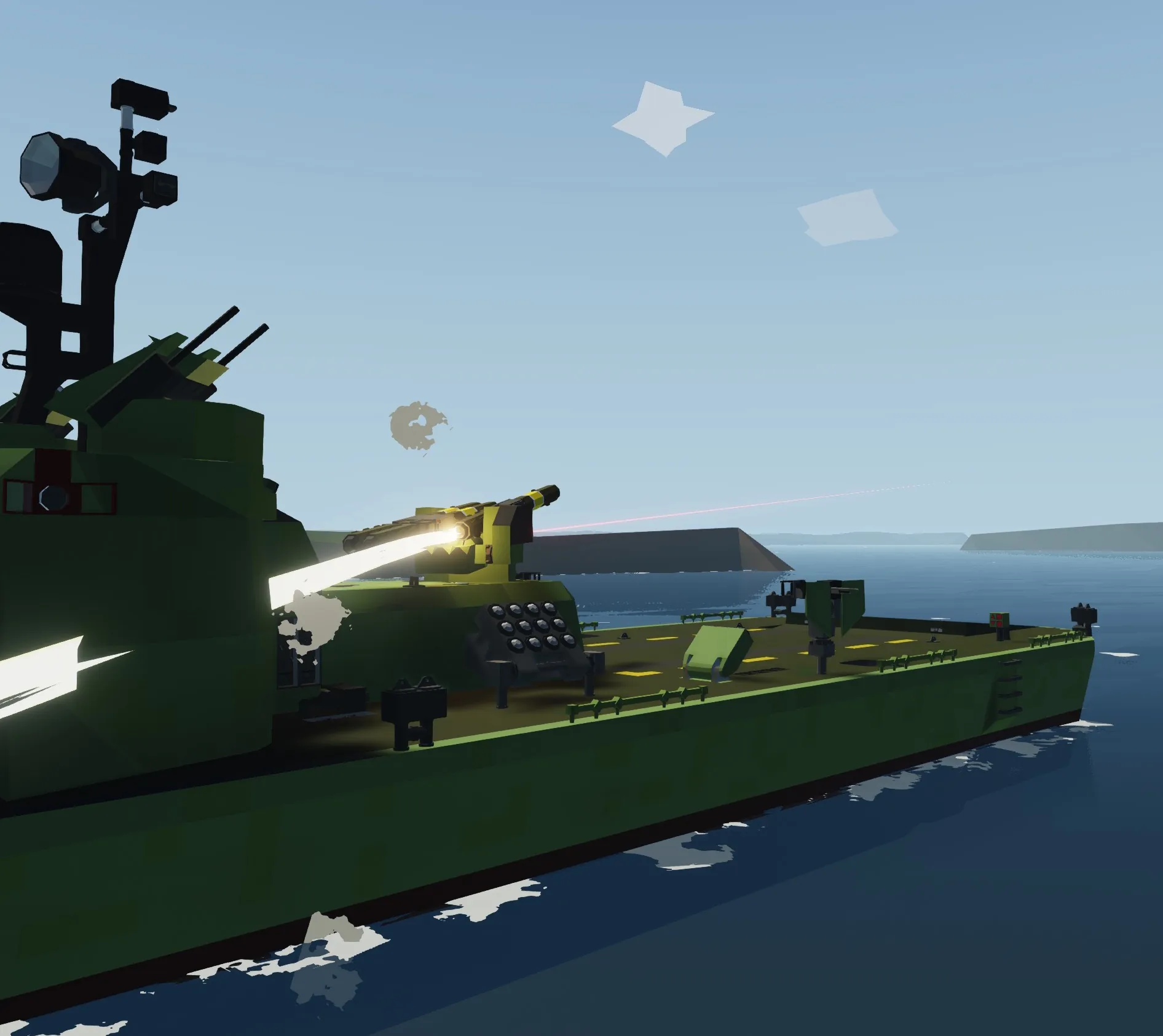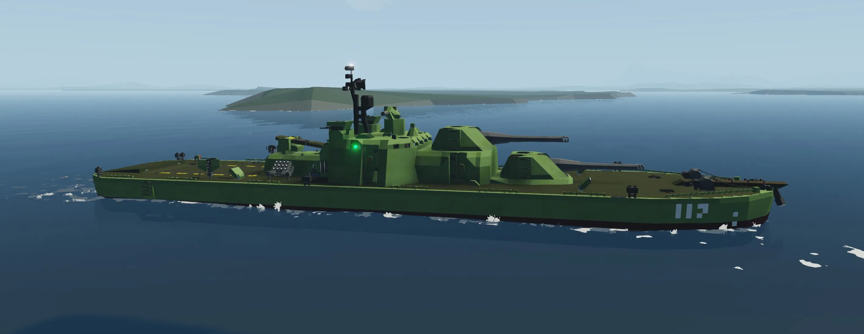 This is a riverine warship designed for support of ground forces, amphibious operations and countering enemy brown-water vessels. This is my most complicated and advanced build to date with a whole custom Fire Control System and other equipment. I tried to balance playability and realism. Enjoy!
