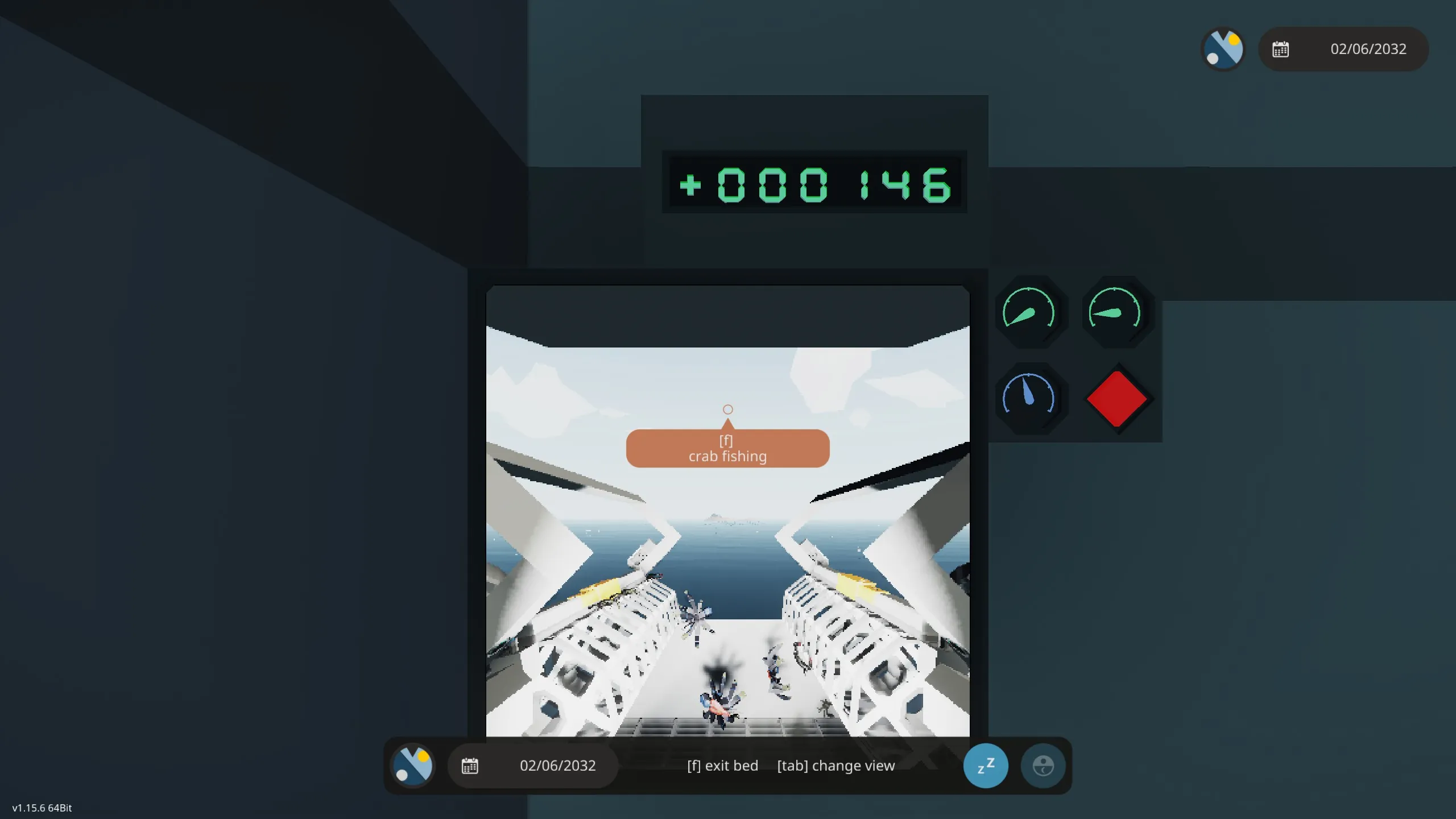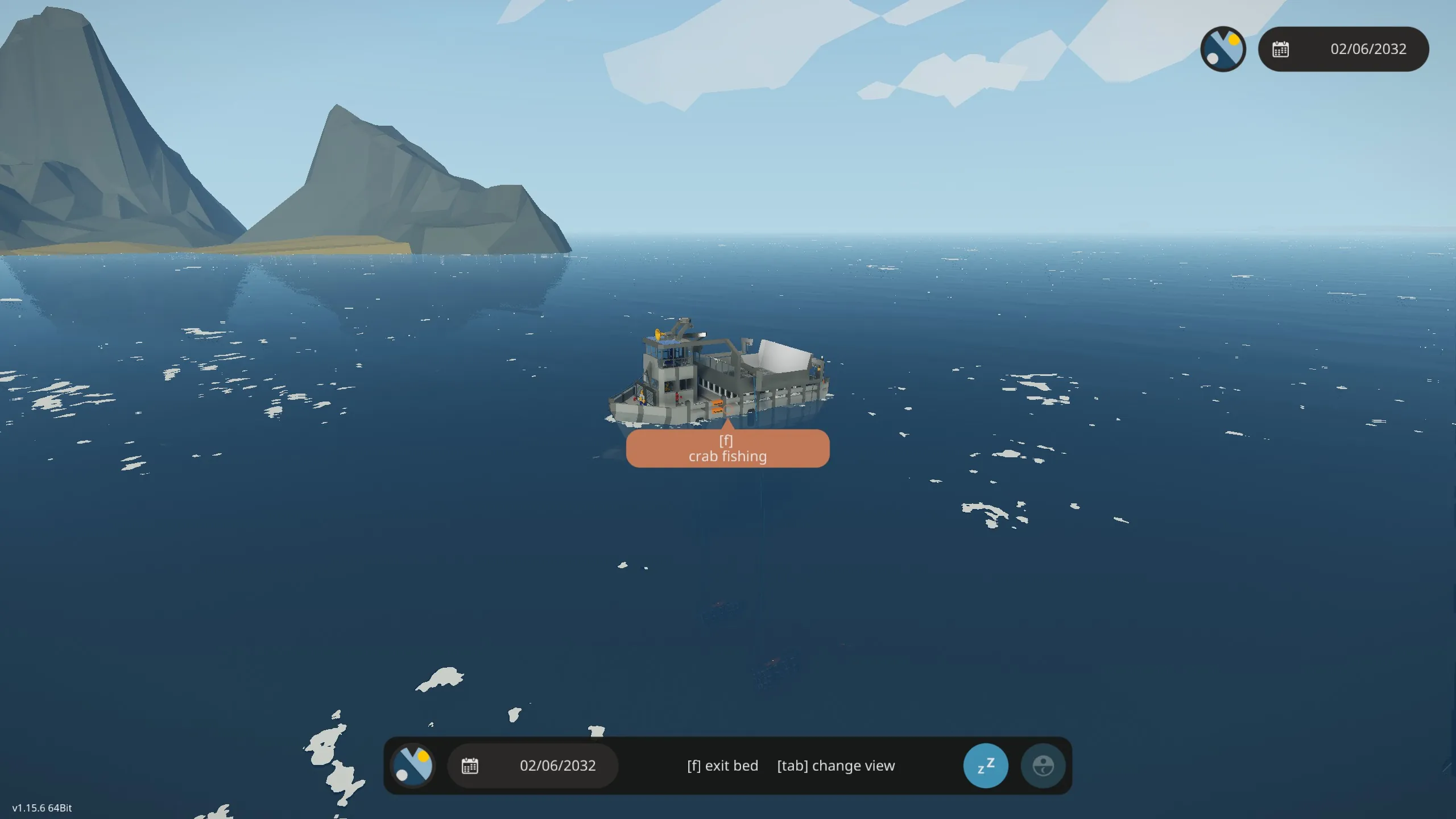 This crab fishing boat fishes automatically while you lie in bed and time passes.