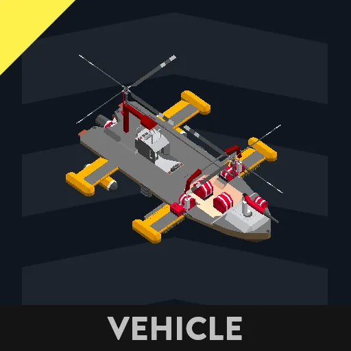 I was thinking about making a Jet or an Attack Helicopter and realized those are both boring... so I split the difference put a jet engine on a boat with rotor blades to make something that's as agile as a Helicopter, as fast as a fighter jet and can float like a boat. It's effectively a fast attack mini-Airship.