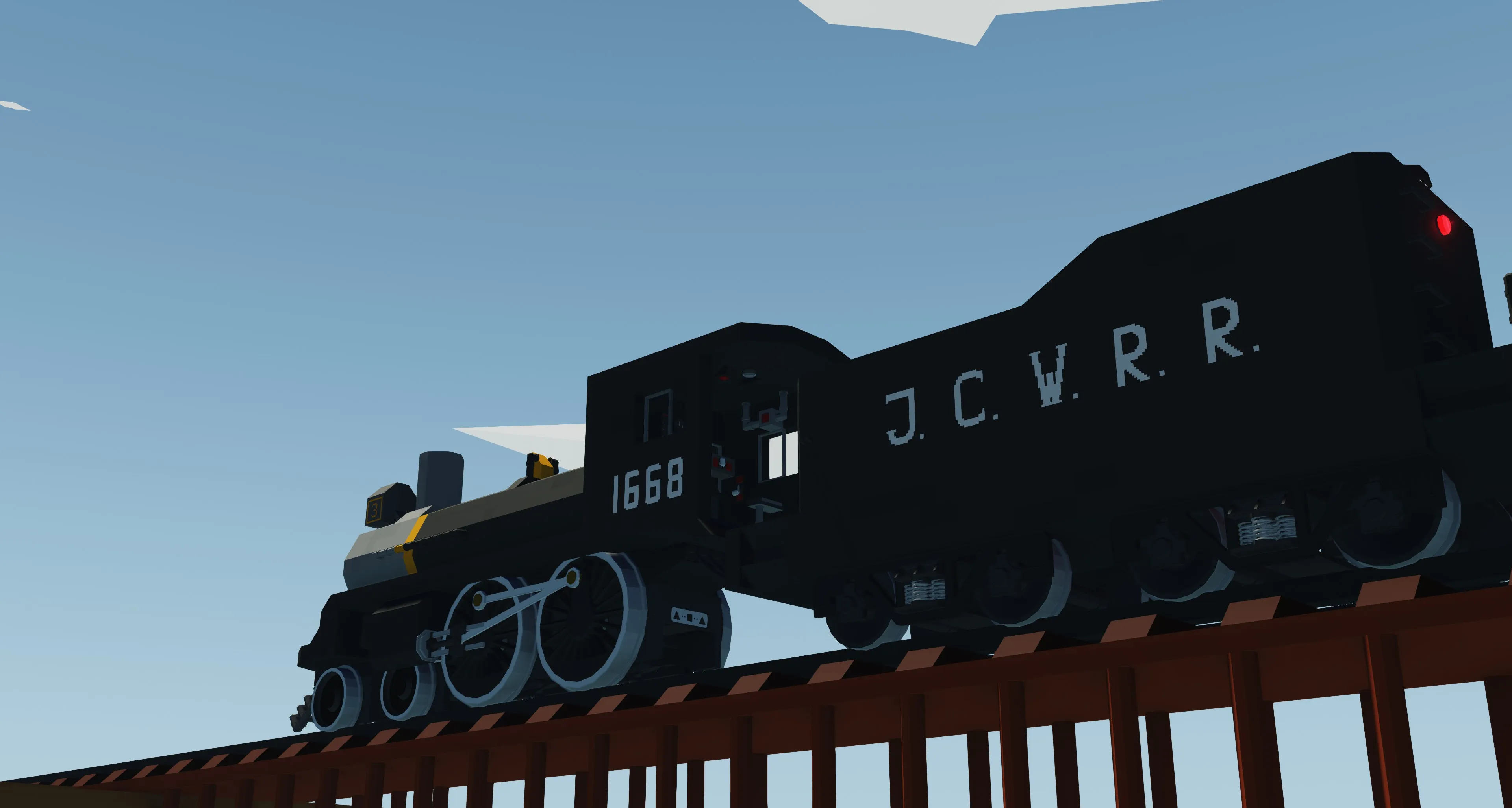 This is a Western locomotive roughly from the year 1890 with a 4-4-0 wheel arrangement, featuring a Sharon knuckle coupler. It is in the style of a PRR Locomotive. It is from the fictional company JCWRR (Jocoma Colorado Western Rail Road)