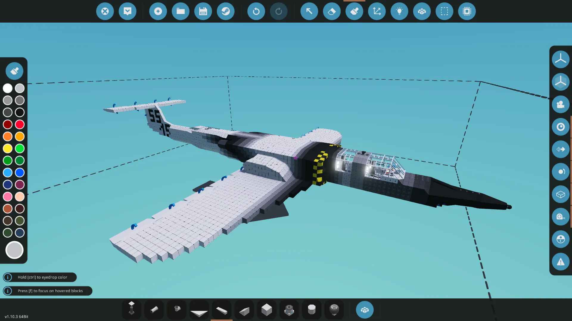After a year and a few months of silence and no creation, i have finally risen up to the task of creating the newest Sky Stalker Aircraft! the SS1 Thunderclaw is the newest plane in the SS lineup, featuring the body similarities of an F15, and a Mig 19. it has 4 engines like most of the SS aircraft. and features a minigun with simple to understand controls! enjoy the anniversary craft to the first SS ever made. the SS15. it will be featured in the photos.