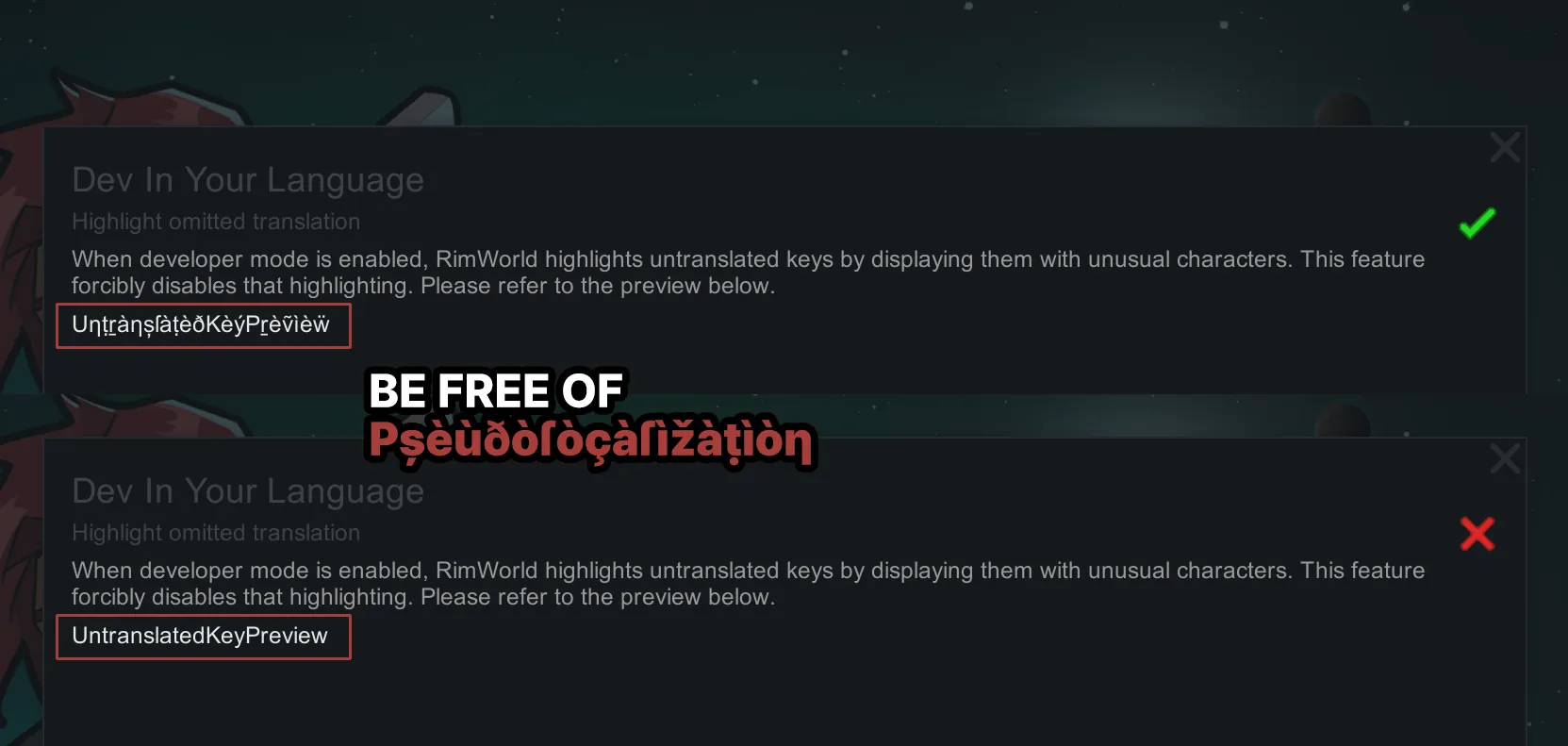You can submit a pull request to the source repository: [url=https://steamcommunity.com/linkfilter/?u=https%3A%2F%2Fgithub.com%2Falattalatta%2FRW-DevInYourLanguage]https://github.com/alattalatta/RW-DevInYourLanguage[/url]