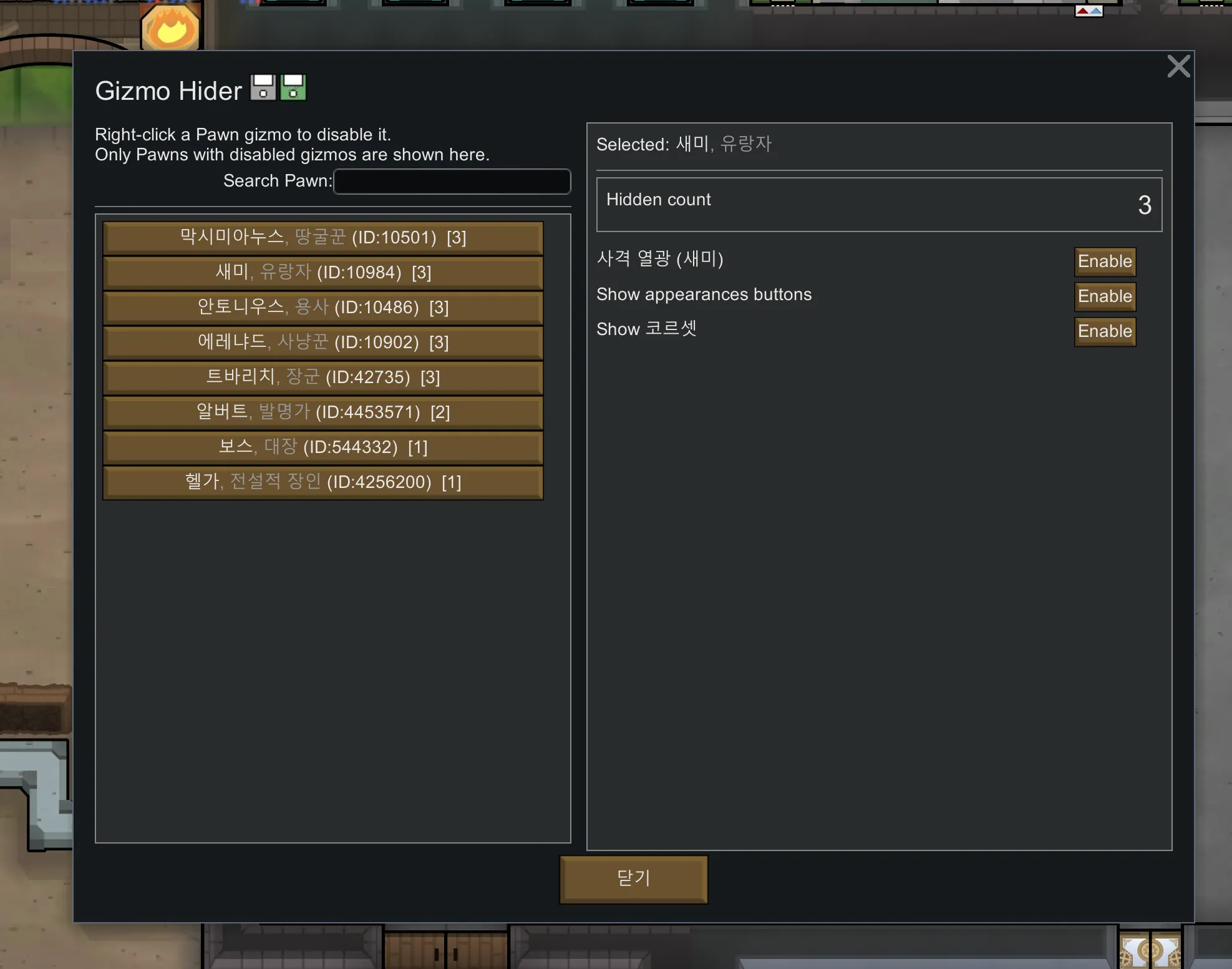 A: Go to the mod settings, select the pawn interface you want, and click the buttons you wish to restore.