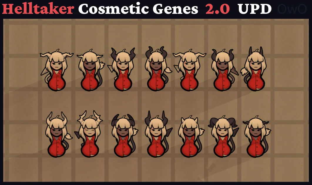 Adds 8 horns, 4 ears, 4 tails and 2 skins inspired by Vanripper's Helltaker game (and comics).