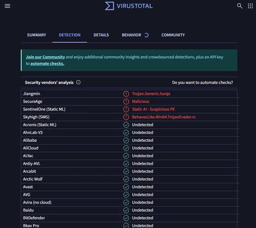 EXEver2.2がウィンドウズディフェンダーから脅威と誤検知されていたため、対策したver2.3をアップロードしました。2.2で支障なく動いている方は更新不要です。画像の5枚目にウィルス判定するサイトの診断結果画像貼っておきます。