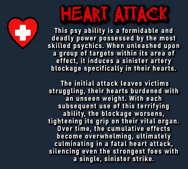 Heart Attack is now an AOE ability, successive uses increases chance of death.