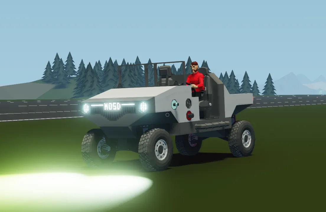 The Mosdria Co Gallimimus 01D, this lightweight vehicle is designed to traverse forests, tundra & deserts. With a simple gear mechanism, anyone can operate this vehicle. Brought to you by Mosdria Co.