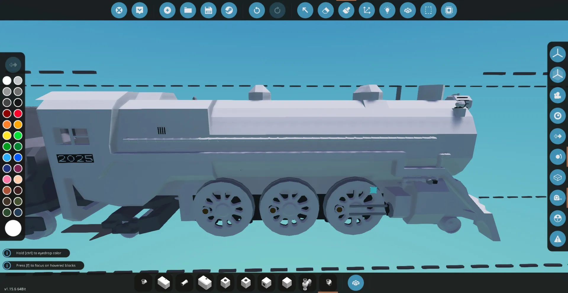 the tender lettering is not there as i was to lazy to put it on. The locomotive uses the large spot light from ilp0tt1s Decoration Mod, and as you are not able to upload creations with mods, you have to put it on your self using the provided pictures as help. (I also recommend using an orange tint for the headlight for extra realism). The Original 2025 is still on the workshop, but i have removed the 2035 and 675 off the workshop and i do not plan on remodeling them as i did with the 2025. And lastly, the locomotive has sadly lost it motor detailing, but it is now powered by the steam system, using the same controls as the NELMW pacific.
