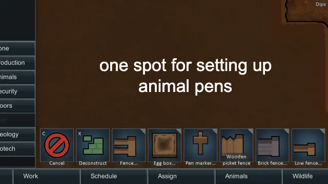 Adds a brand new "Animals" category. Now you have one spot to manage animals in your architect menu. With VE Genetics, it removes the Genetics category and moves all of its stuff there. With Large Animal Beds, it removes its category and moves its stuff there.