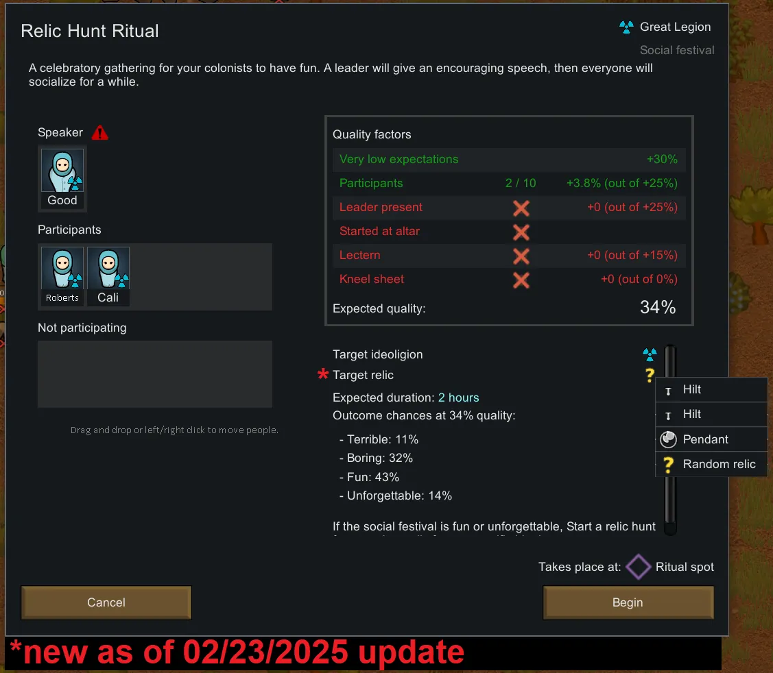 Added a new row to the ritual window that allows you to target a specific Ideology relic, default is random.
