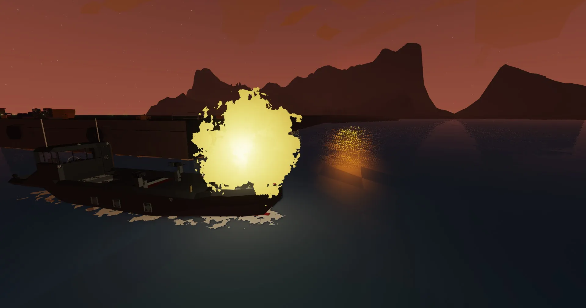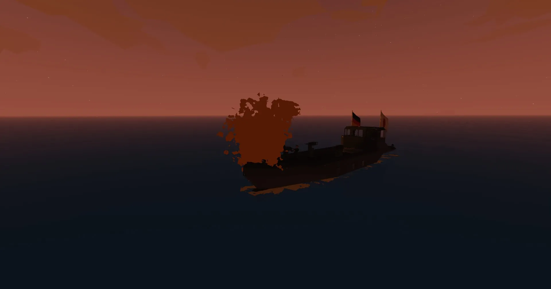 it is a ww2 small cargo boat NOT REAL 1 front heavy cannon . 2 anti air guns . 1 back light cannon . WARNING!! DONT RAM IN TO PORT WITH THE FRONT THERE IS 2 WARHEADS ONE IS BIGGER ONLY FOR EMERGENCY ONLY RAM ENEMY