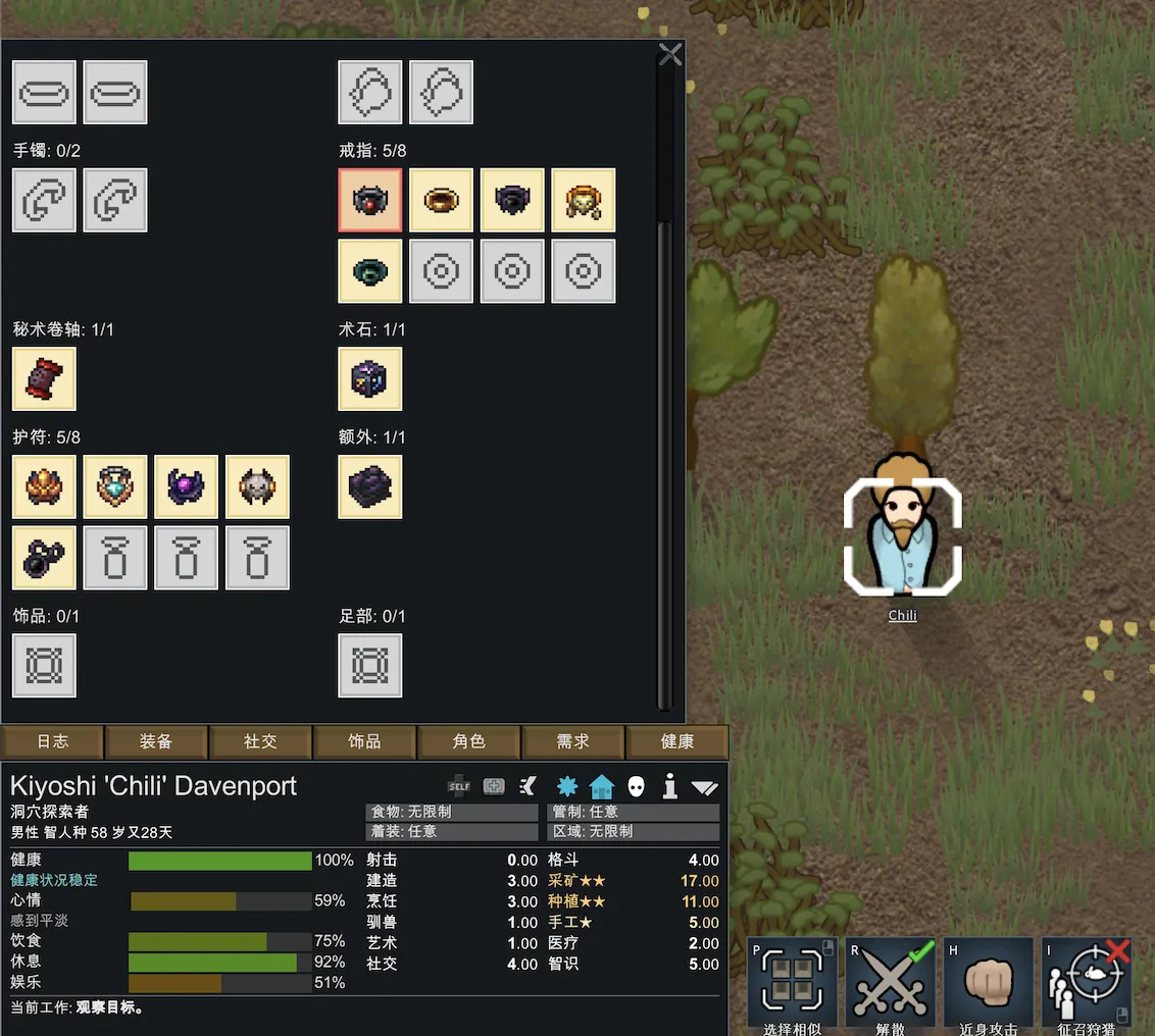 With the help of the RW Curios API, you can equip your colonists with various accessories to grant them a wide variety of buffs.