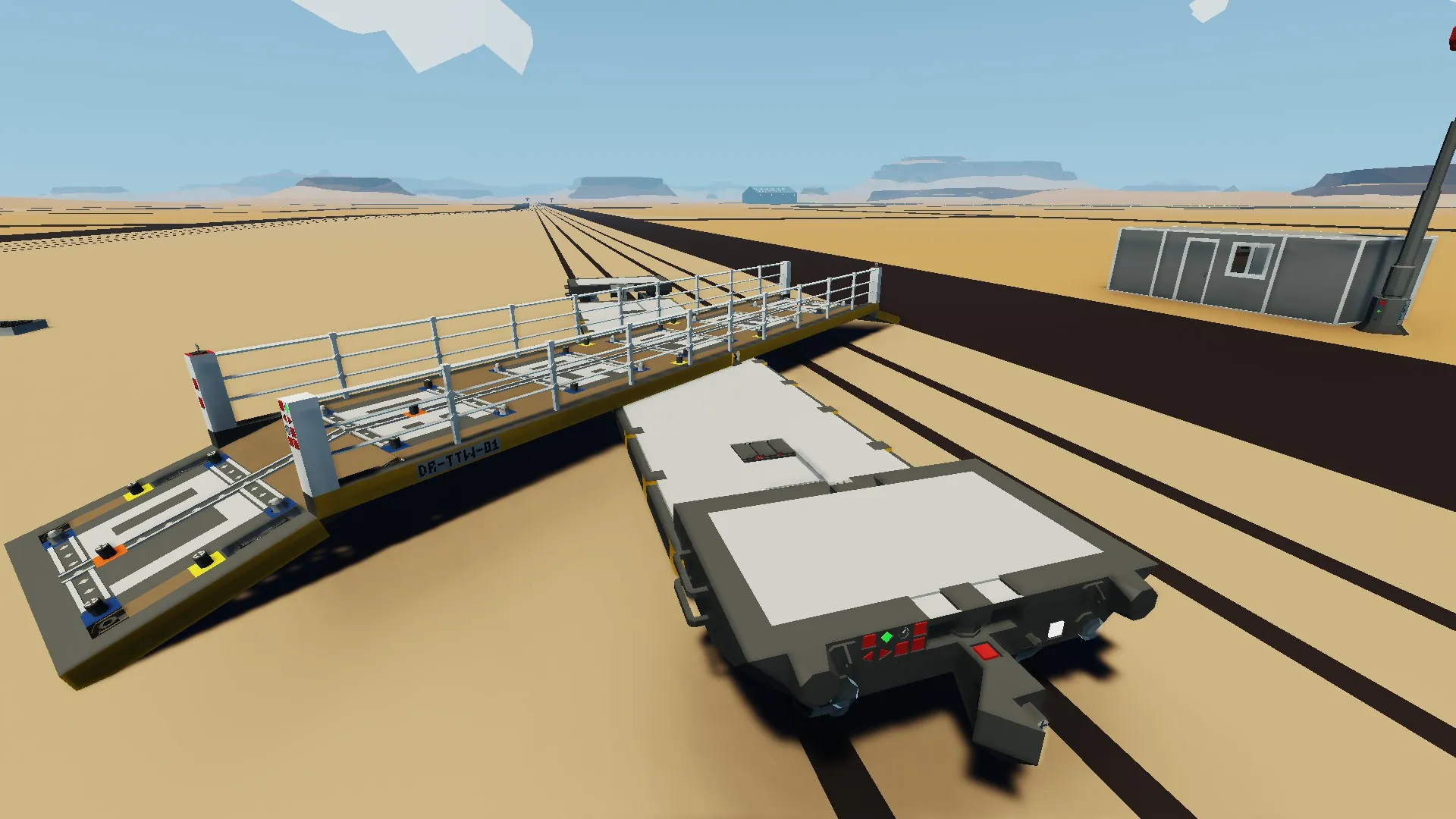 [*] Ensure train brakes are on and that the turntable wagon is on even/level ground