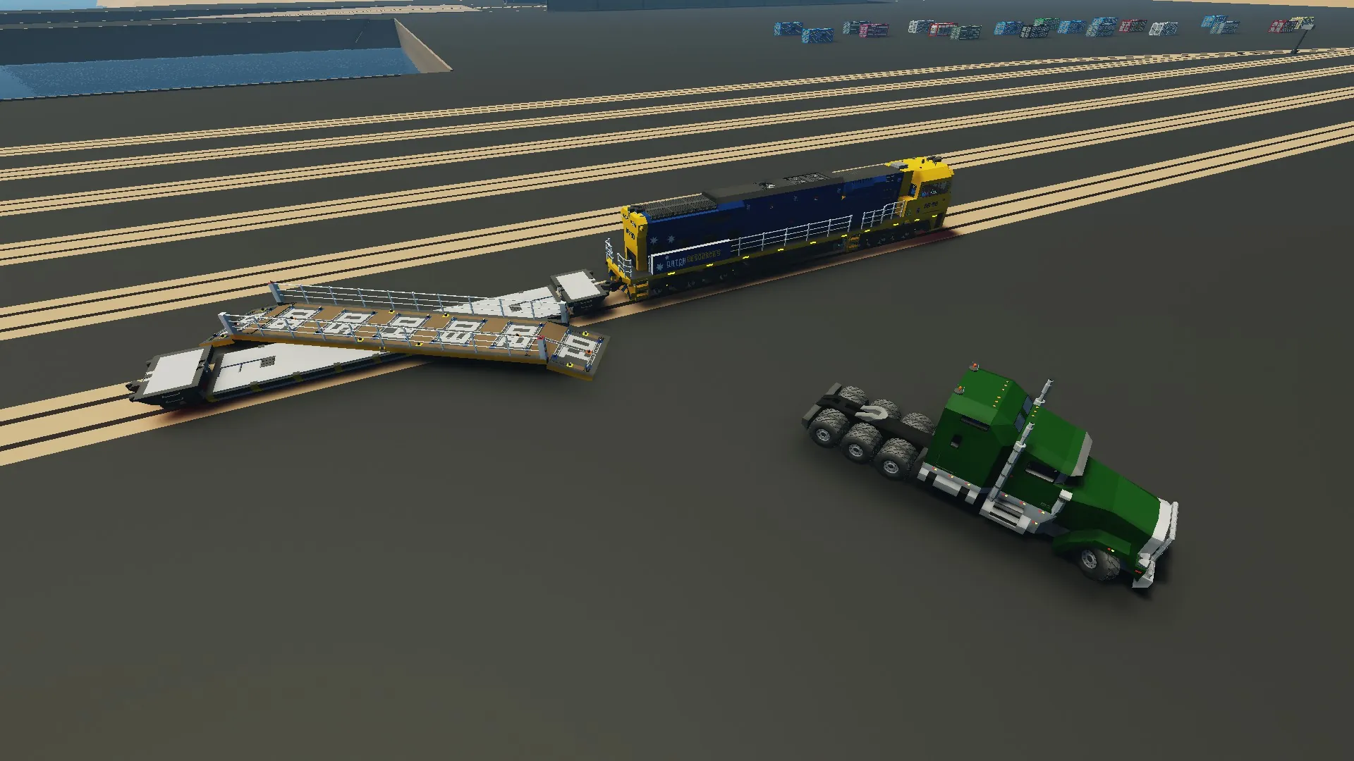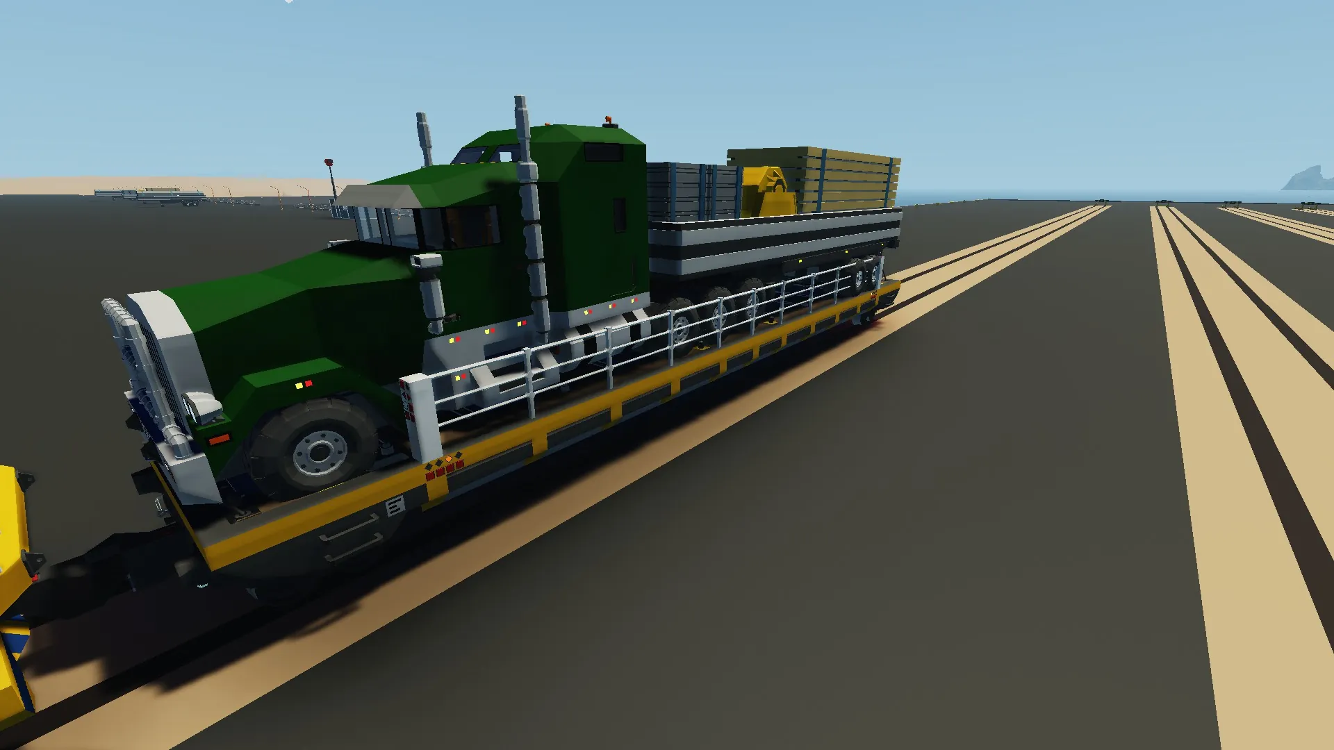 This wagon was built with interntions to make the transport of tractor trailers along railways much easier and safe.