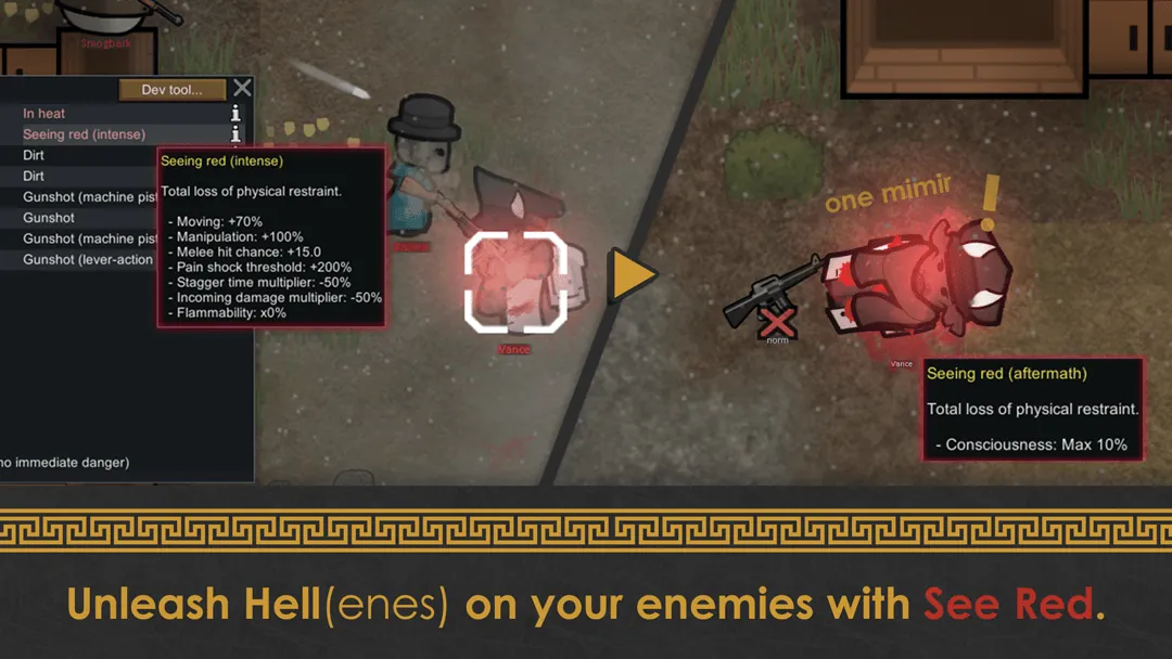 Pawns with the Herculean gene can equip weapons that others can’t, thanks to their immense strength and battle prowess. In 1.4, only uncraftable Herculean weapons were included in the mod, but in 1.5, we’ve included the Epsilon Axe to get your minotaurs started.