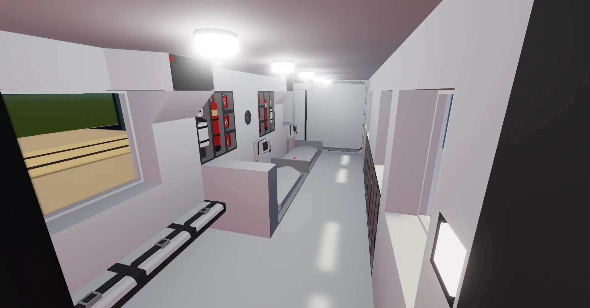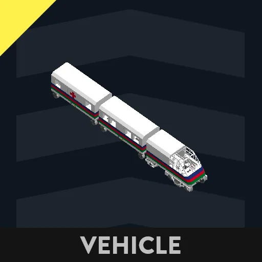 Very easy-to-use small rescue train. It uses electricity from the tracks and also has two batteries in each car. The top speed is 218 kph without cargo and 208 kph with. It has four fluid tanks in total, two in the front and two in the middle. It includes two medical beds and equipment. Not too much, just very simple. (Fluid tanks are empty from start)