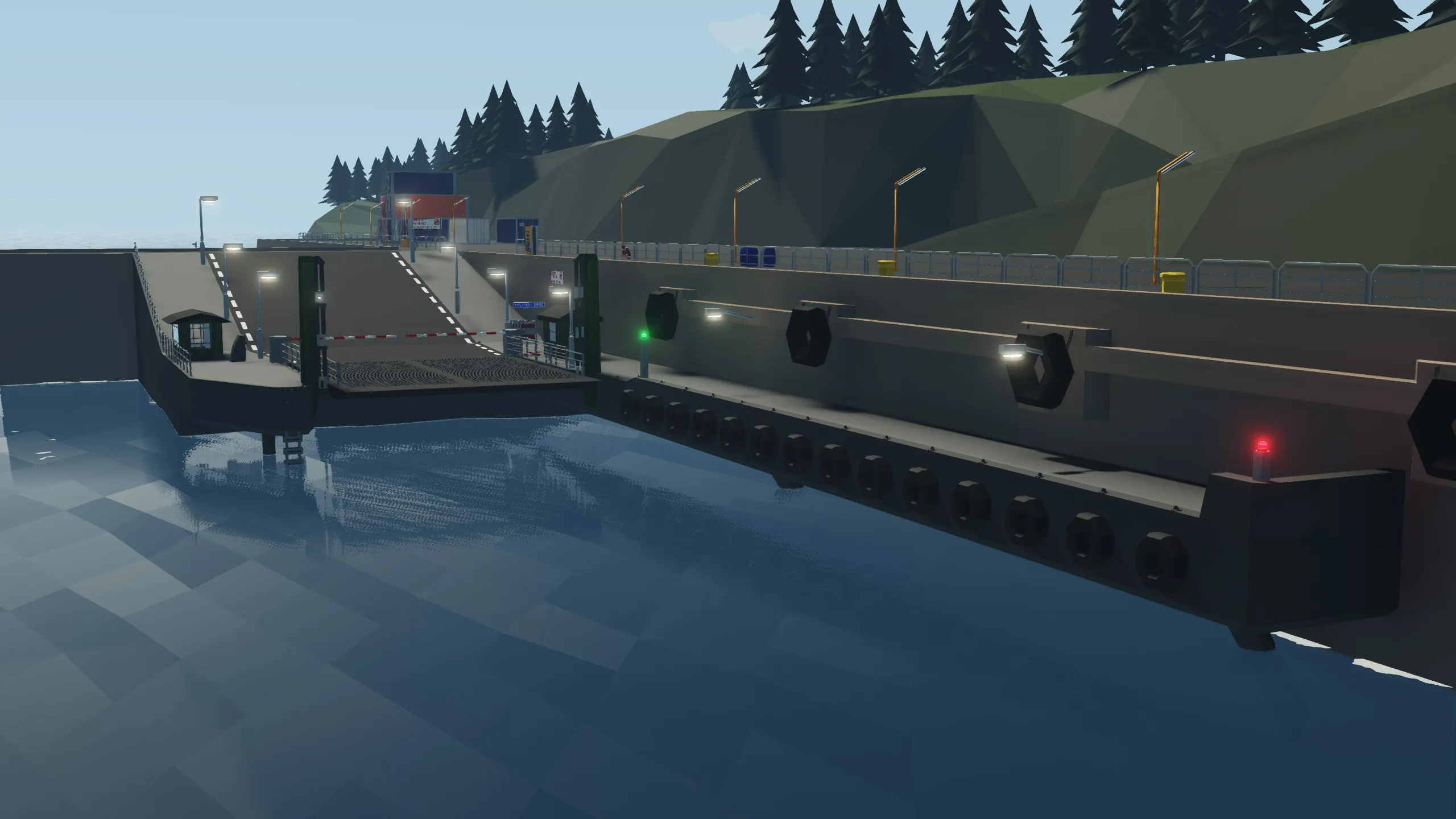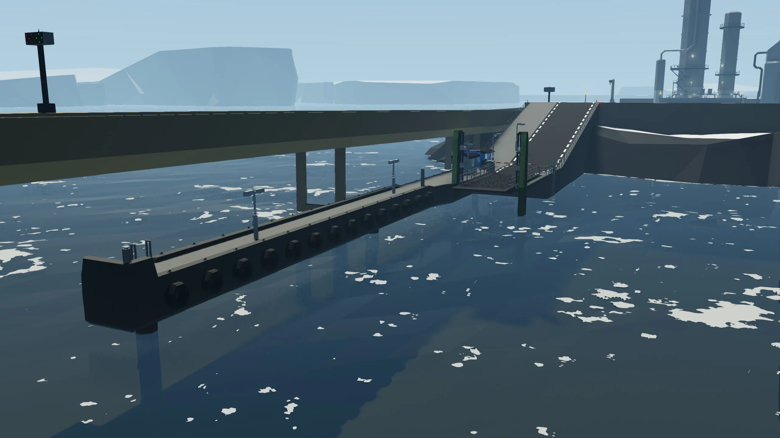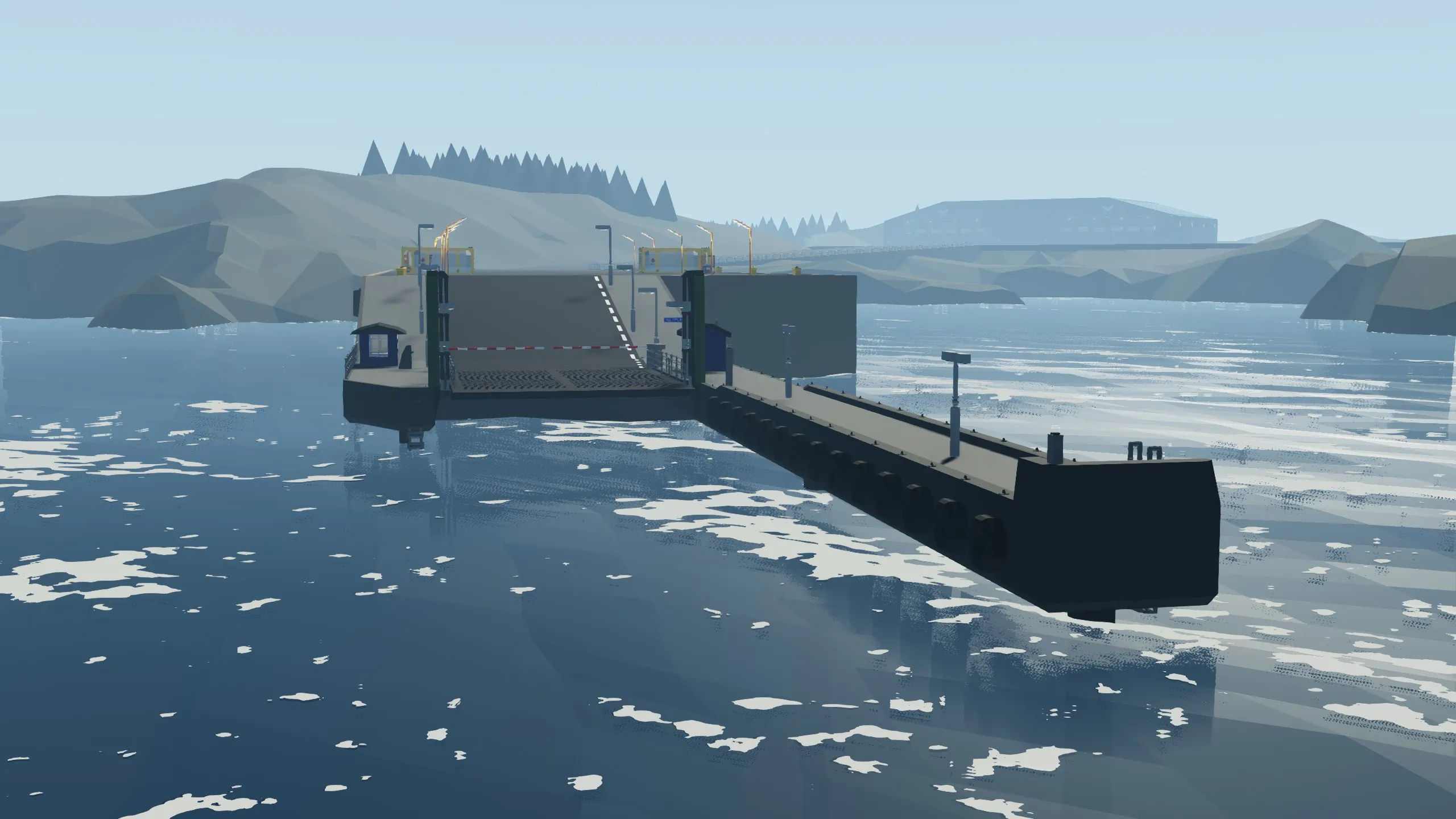 You can control this either with a built in control in your ferry/boat or with a remote control. To build the controls into your creation, please subscribe to [url=https://steamcommunity.com/sharedfiles/filedetails/?id=2868822906]pier controls build-in-kit[/url] and paste it in. To use remote, you just have to go inside the little control house beside the ramp, equip the remote and change the frequency if you want to (standard freq. is 5). To control the ramp you have to use [up/down]-arrows and to open and close the barriers you use [w/s].