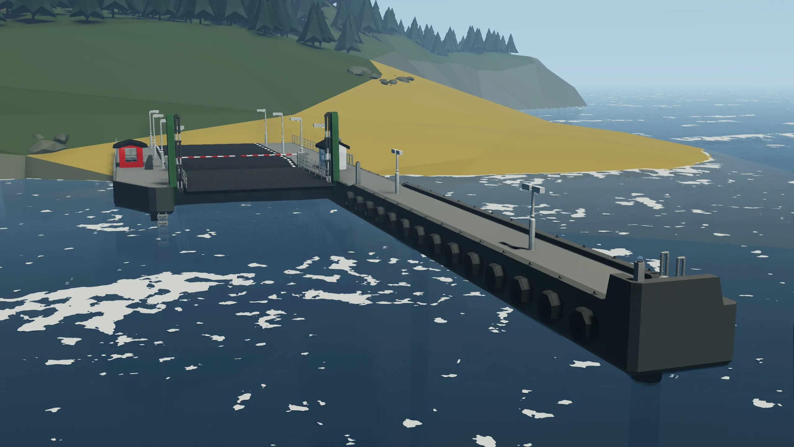This is the new and improved ferry piers for the world of Stormworks! This is an update/version 2 of my old [url=https://steamcommunity.com/sharedfiles/filedetails/?id=2369275298]ferry pier[/url]. This is a universal ferry pier that should fit most ferries but probably not all. The ferry piers spawns in the same locations as before but they now have a better design. All the old logic is reworked and placed in microprocessors and the buttons have been replaced to look better and more systematic. The refuel tanks for the ferries is now build into the dock and a [url=https://steamcommunity.com/sharedfiles/filedetails/?id=2464605640&searchtext=refueling+and+recharging+interface]refuel interface[/url] made by [url=https://steamcommunity.com/id/pika_uwu]Pika[/url] has been used to display the contents of the tank, and control the flow of diesel.