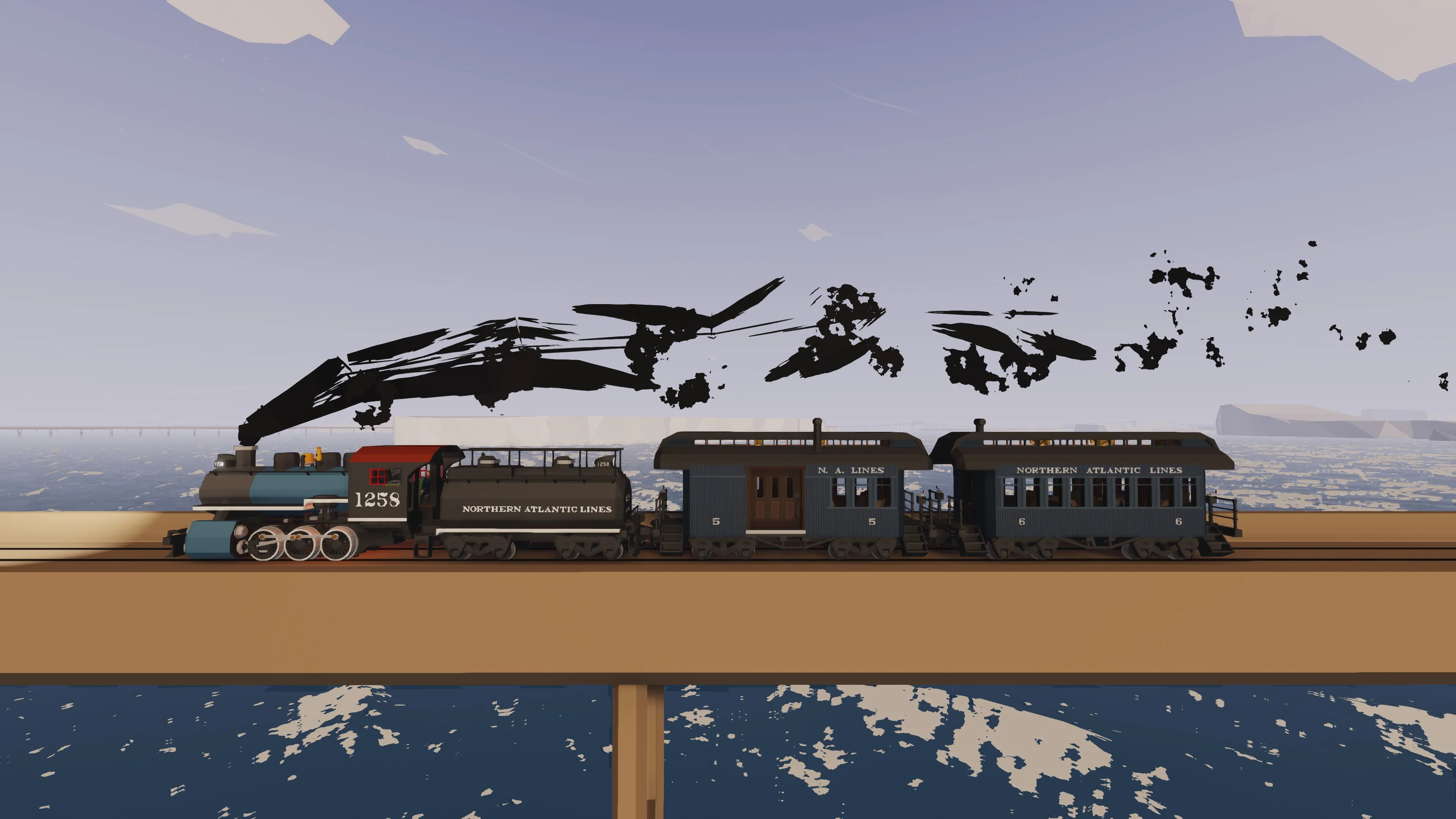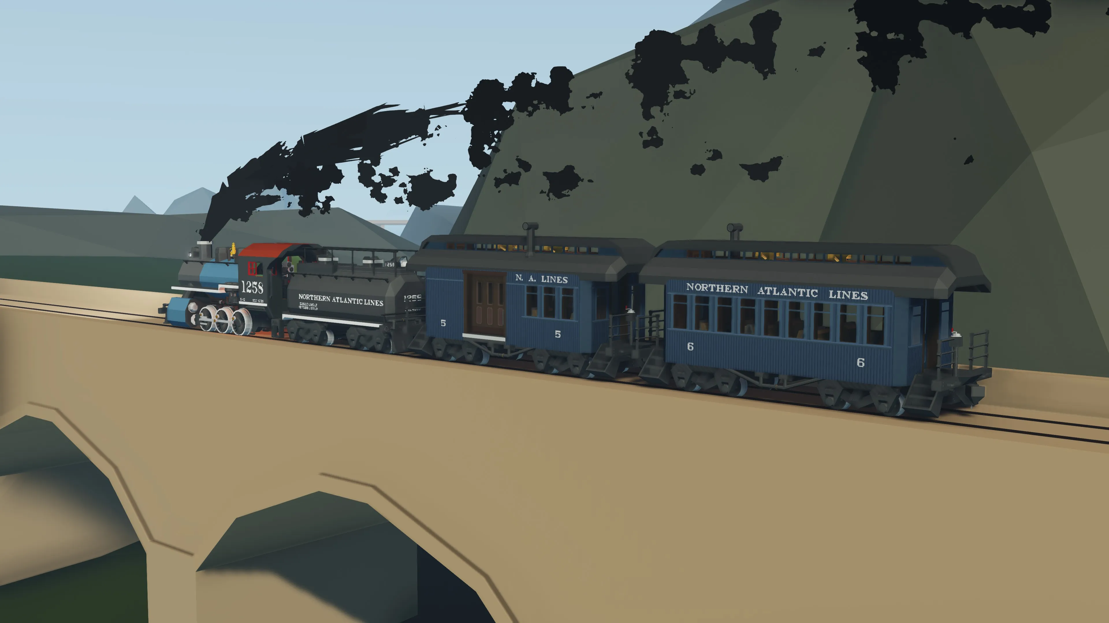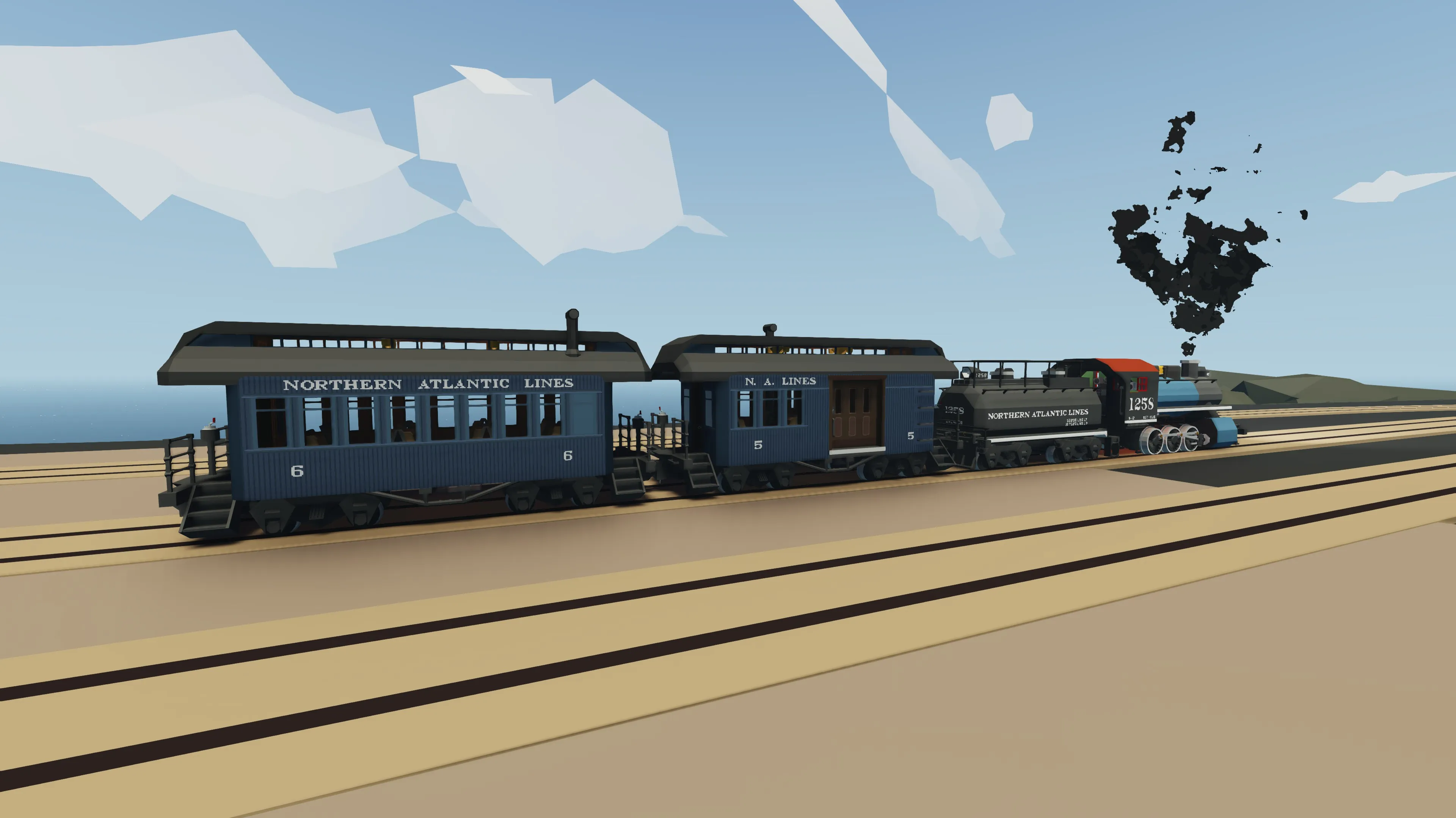 These coaches are modelled after the Sierra Railway Company’s 32-foot passenger cars, presented here in the (fictional) Northern Atlantic Lines livery. The unusually short coaches were required to negotiate the quartet of steep switchbacks on the Angles Camp branch line near Jamestown California, and subsequently work perfectly on the [i]Kade's Better Logging V2.0[/i] mod! The original coaches No. 5 and No. 6 can still be found today in Jamestown at the Railtown 1897 State Historic Park.