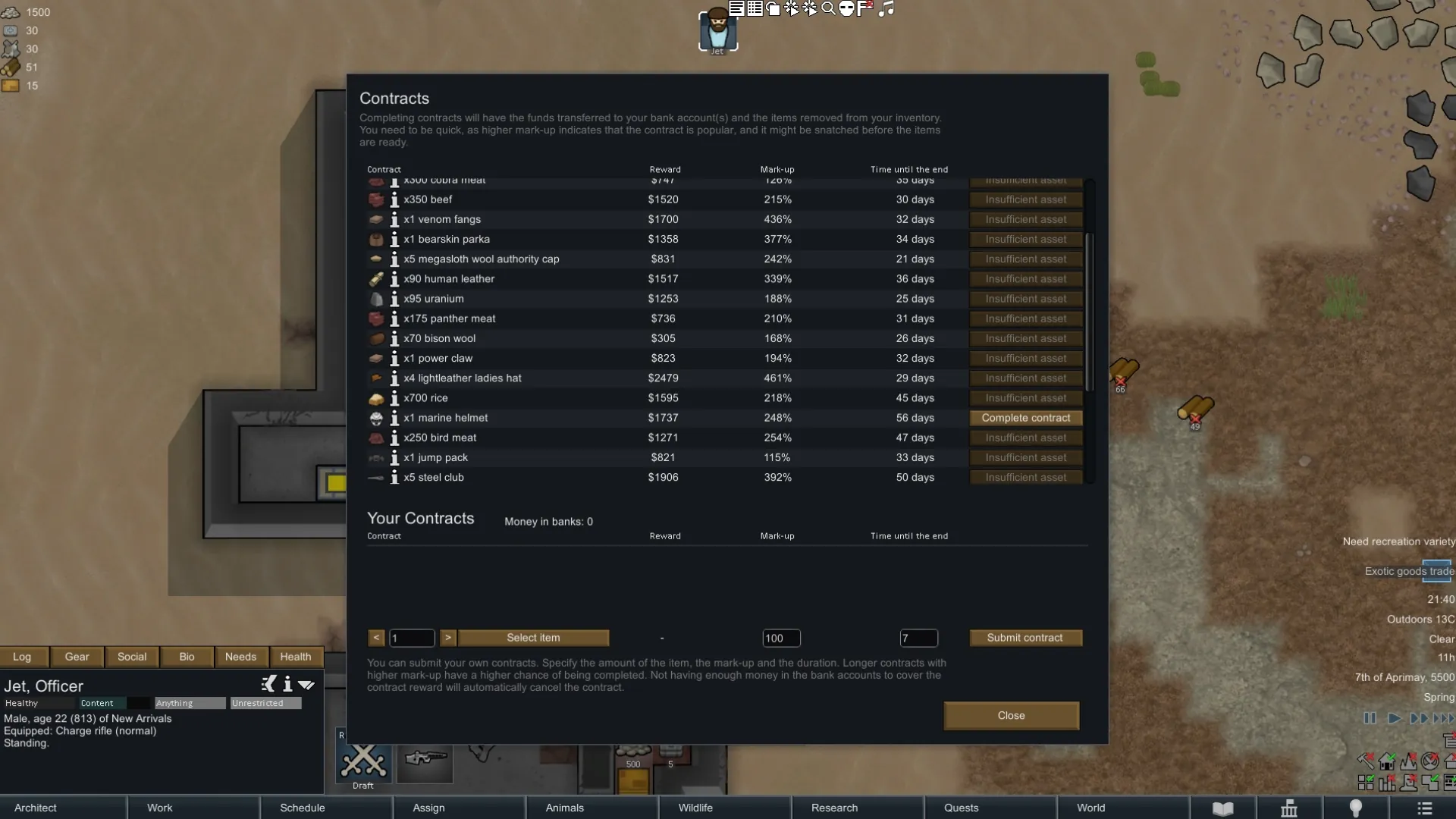 You can also place your own contracts. The more you’re willing to pay for something, the higher the chance someone will approach you with that item. Be careful to have enough money in the bank to cover the cost tho!