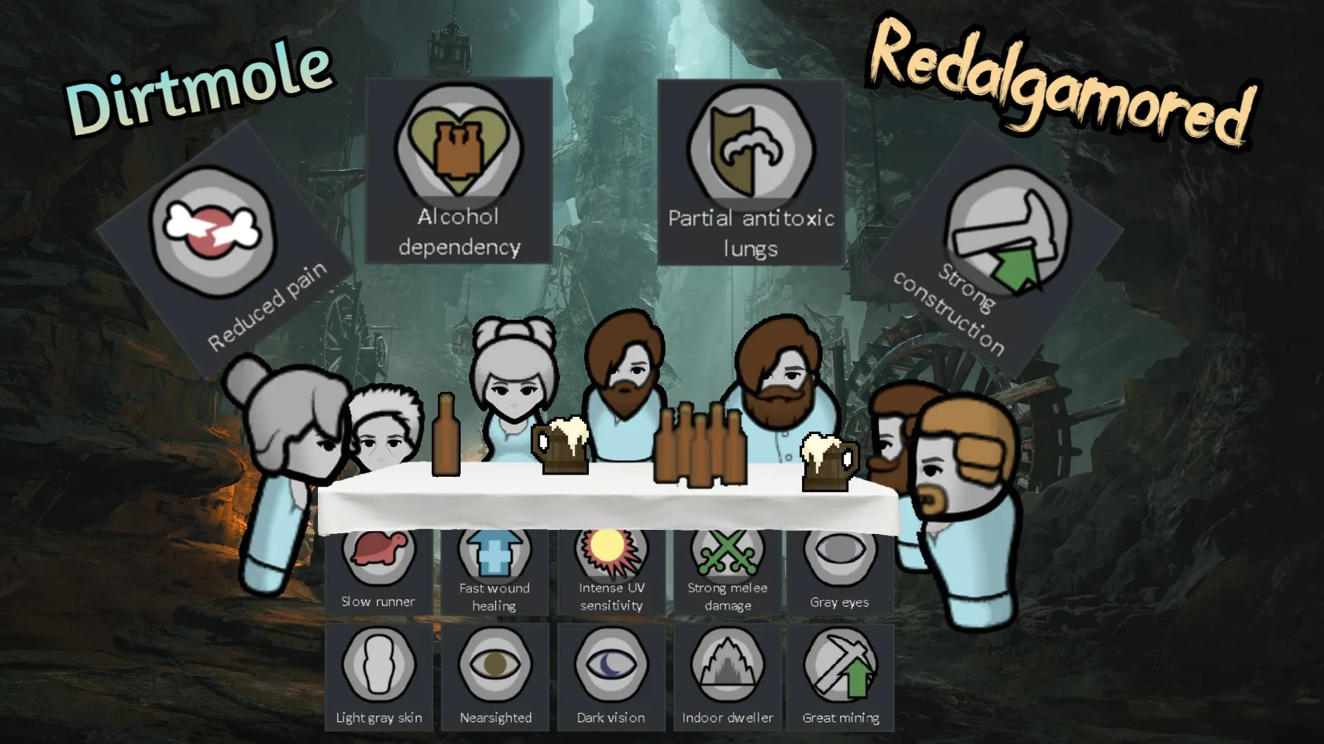 [b] Alcohol dependency [/b] - This is the only 'bad' gene that I added. Why? Because it's fun. And it suits them! They are like dwarfs, don't you think?