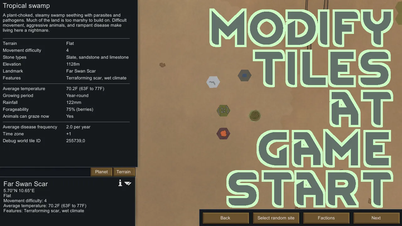 When setting a landing spot, you are not able to modify tiles on the world map. Can't change a biome. Can't add One of those Odyssey landmarks and such. This mod fixes that.