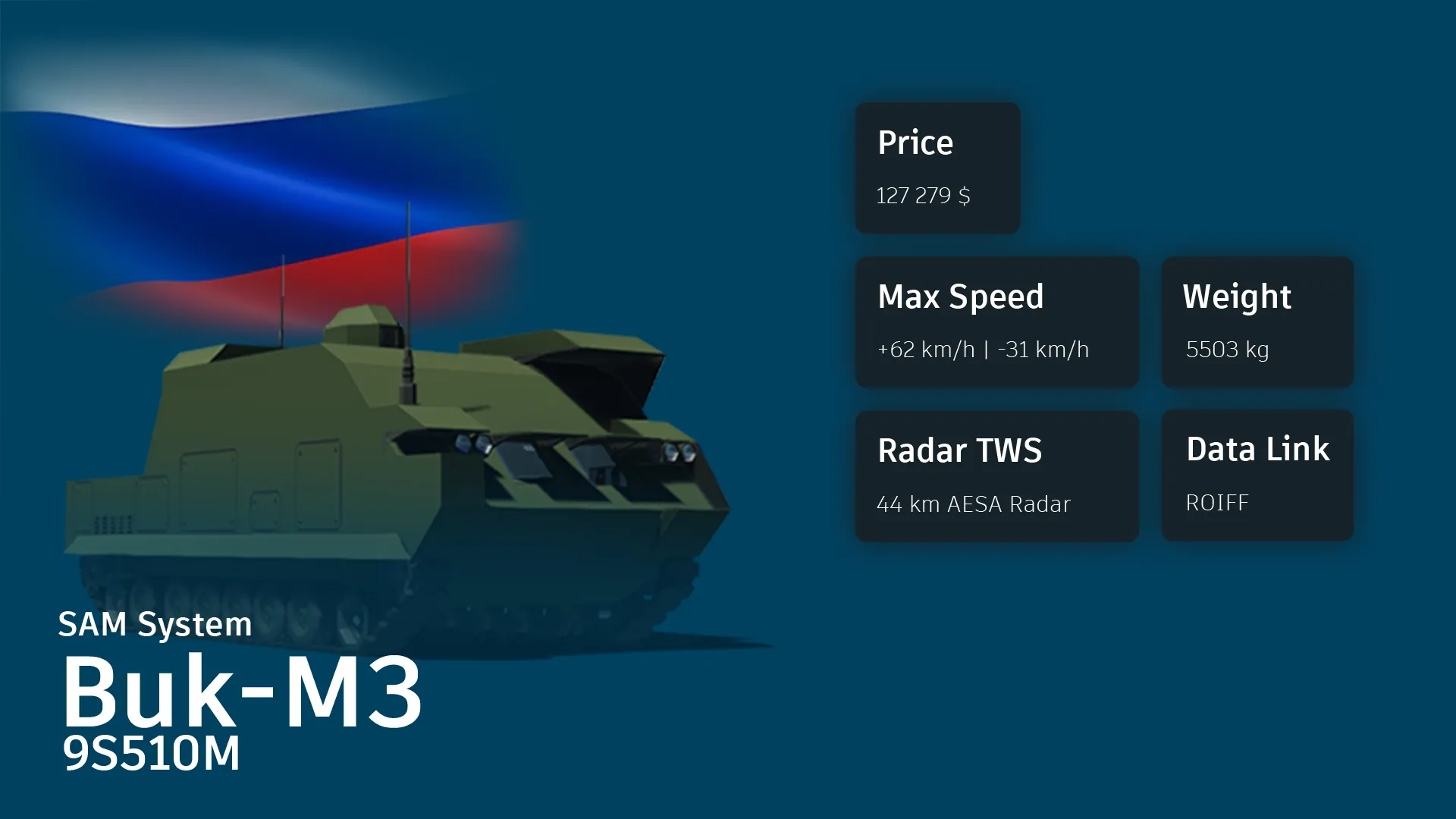 In game, the 9S510M is a dedicated [b]Ground Control[/b] vehicle of the Buk-M3 family. It is the most capable radar system of the Buk-M3 family, fitted with an AESA radar capable of up to 40 km Search and Track. While not being the most relying radar system, especially when the target is actively chaffing, it gives a great situational awareness view as it has a map view of the found targets.