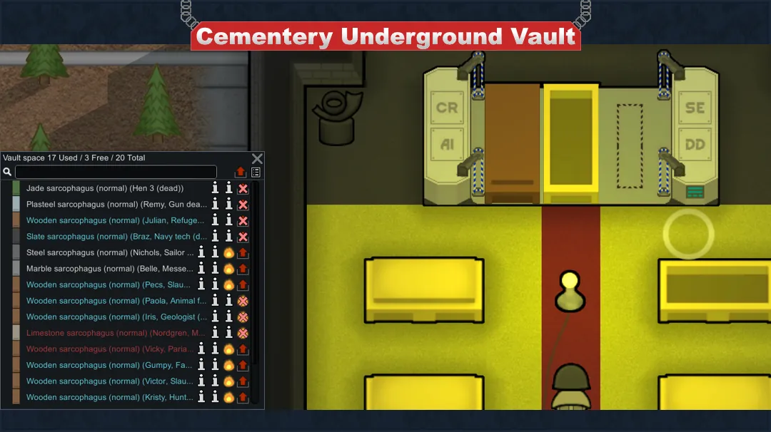 Vaults located deep underground, which doesn't allow raiders to know about their existence (items inside not counted as part of colony wealthm unless enabled in settings).