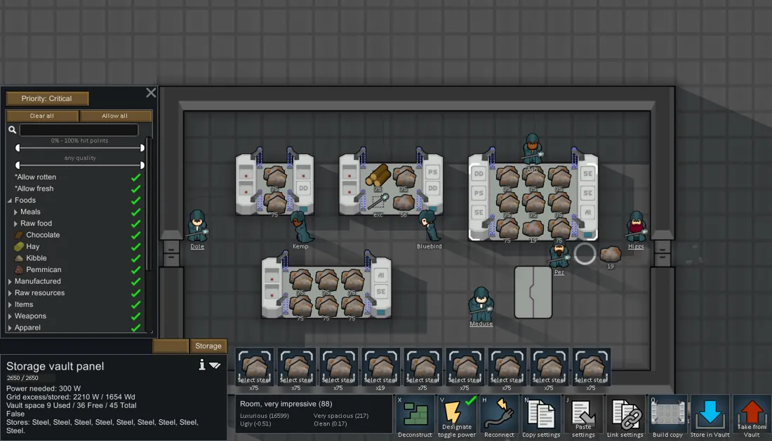 Mod adding new buildings Vault Terminals, that allowing your pawns to operate Underground Vaults under them. Vaults provide a big storage space, that safely hidden from any raiders activity. The disadvantage of Vault is that it takes long time to bring items from Vault to the surface for pawns usage afterwards.