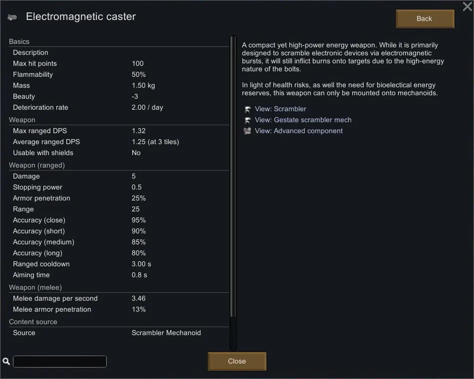 This mod adds a new mechanoid equipped with electromagnetic weaponry.