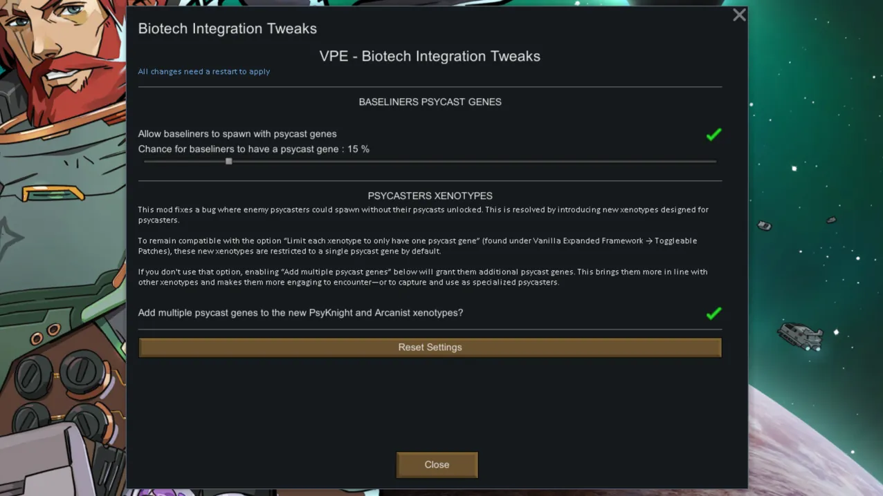 Optional setting to give baseliners a configurable chance to spawn with a random psycast gene, can be adjusted in the mod settings.