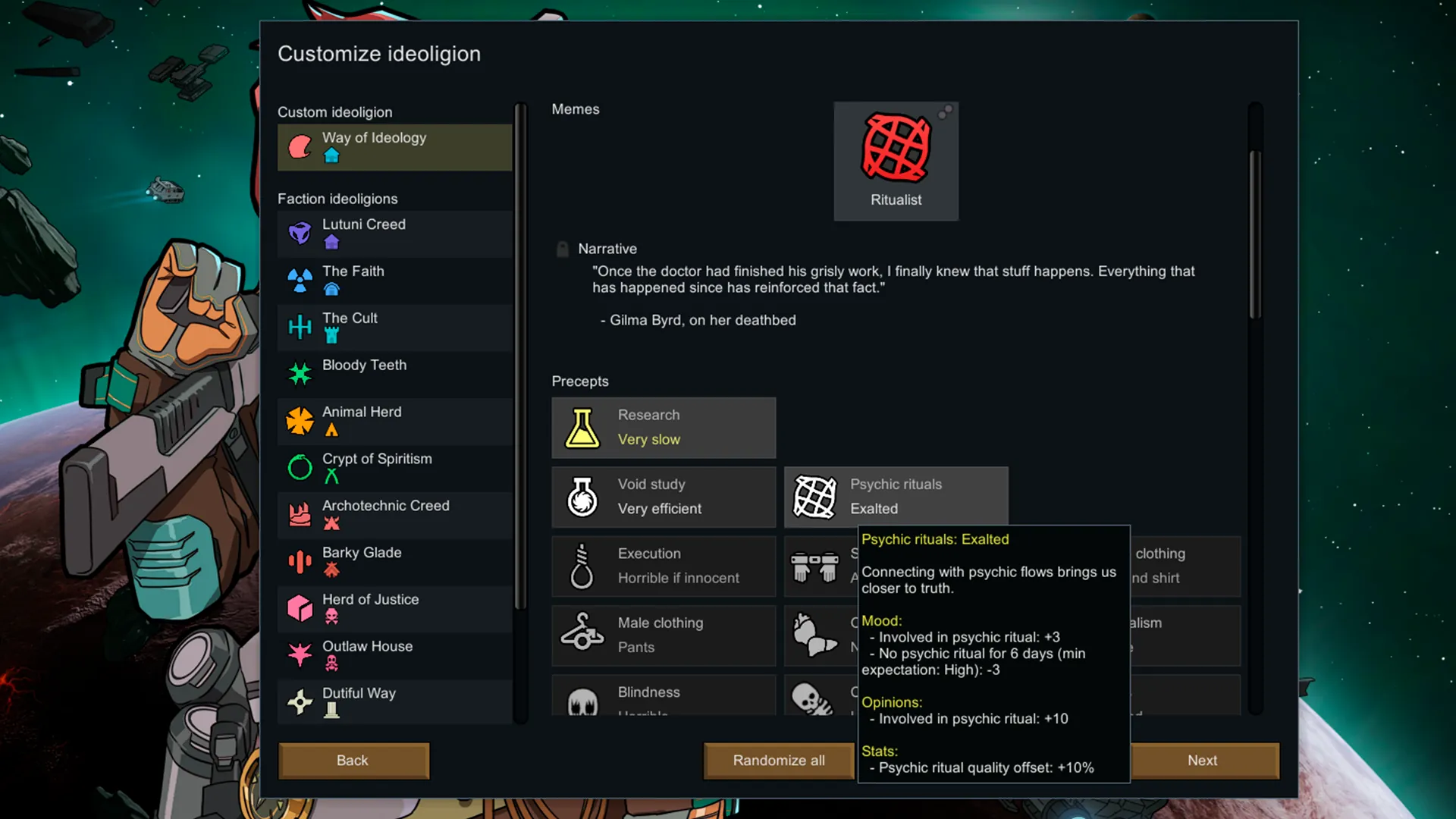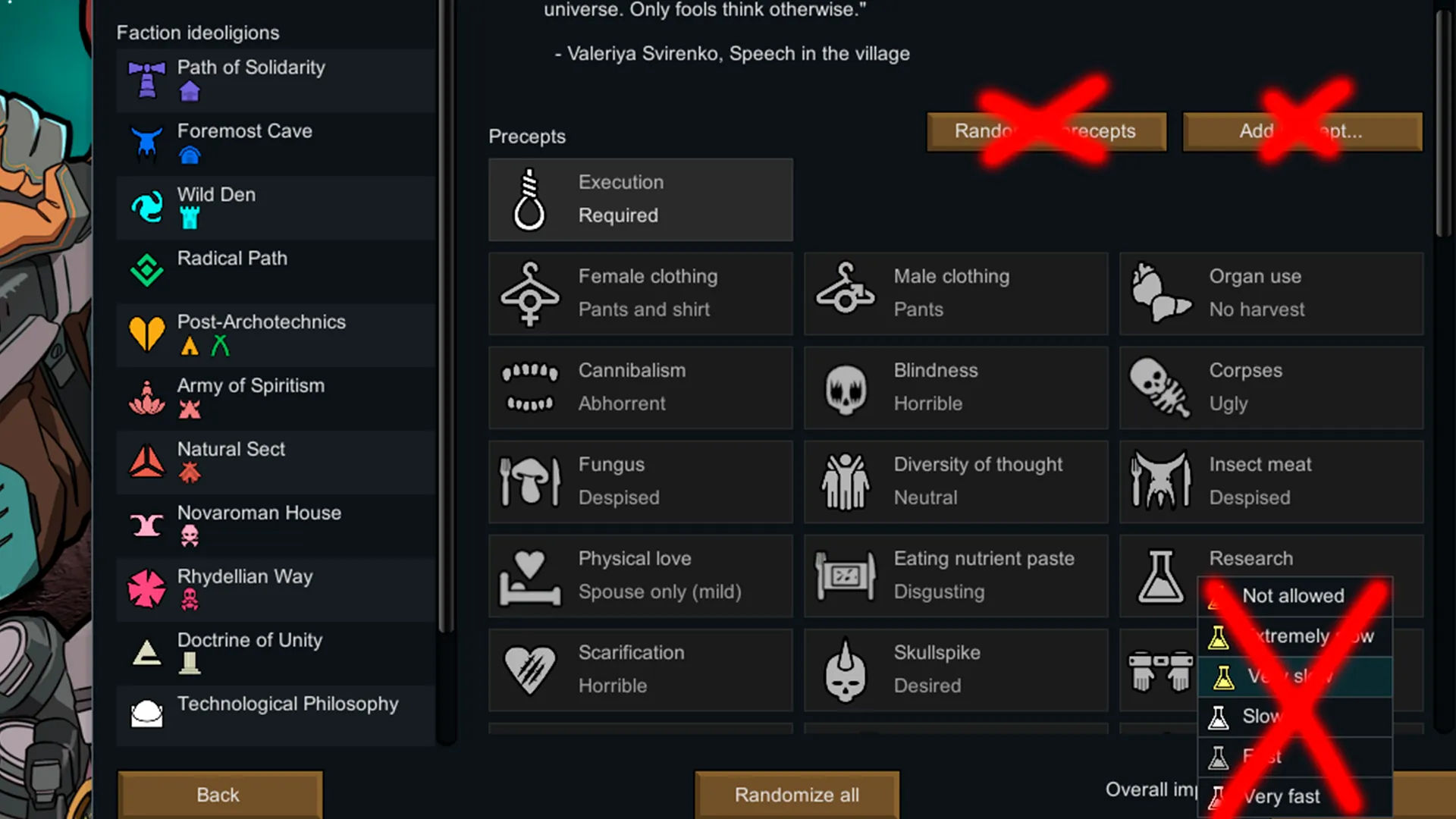 When I first tried creating a Fluid Ideology, I honestly thought I had forgotten to turn off Development Mode. Being able to pick any precept "for free" felt like it broke the balance and the very essence of the chosen Memes. I specifically blocked only the precepts because they have the most significant impact on gameplay, while everything else is mostly cosmetic.