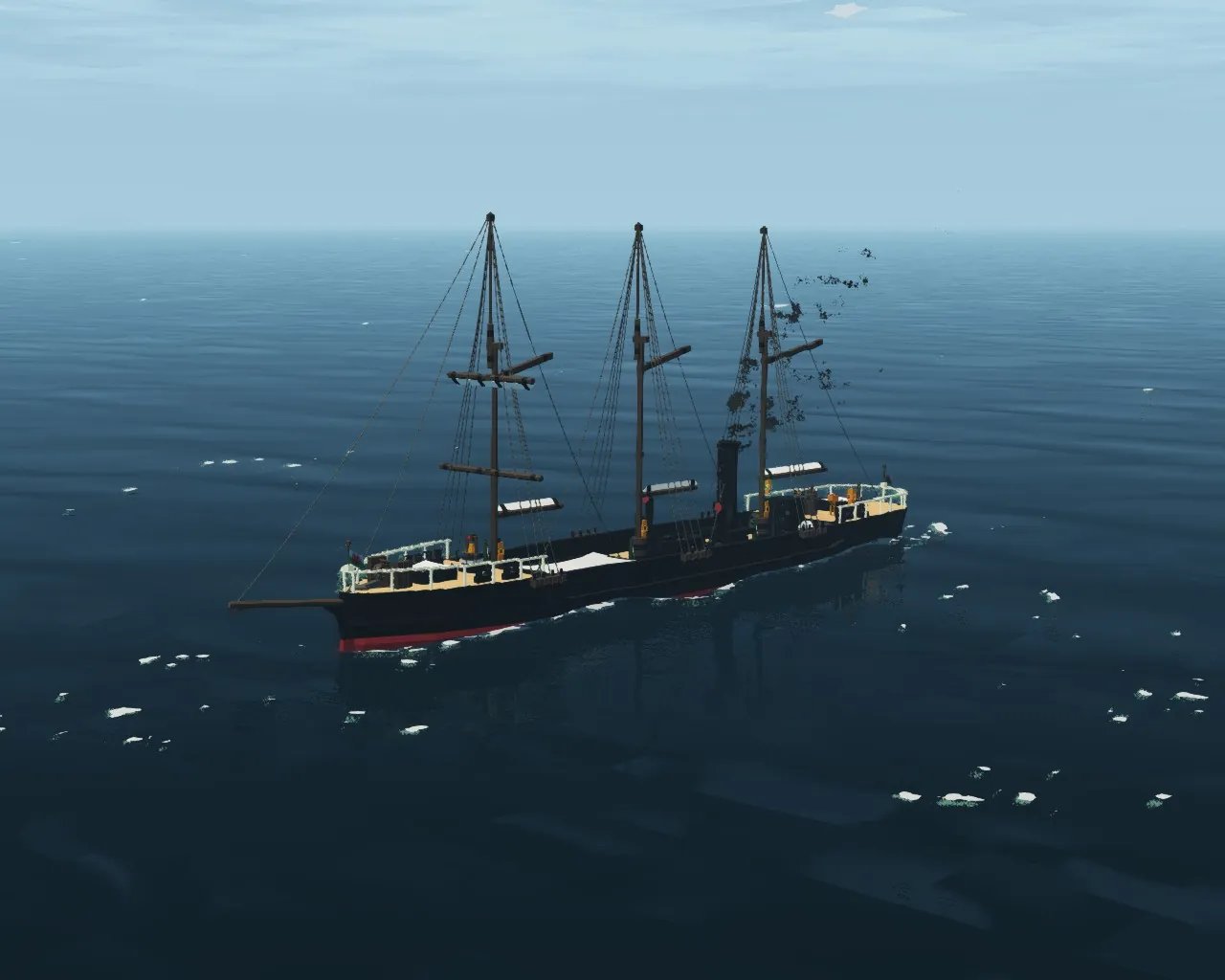Propulsion: 1 Boiler, 1 Steam Engine, 1 Shaft, 1 Screw 3 Blades, Barquentine Rigged Sails