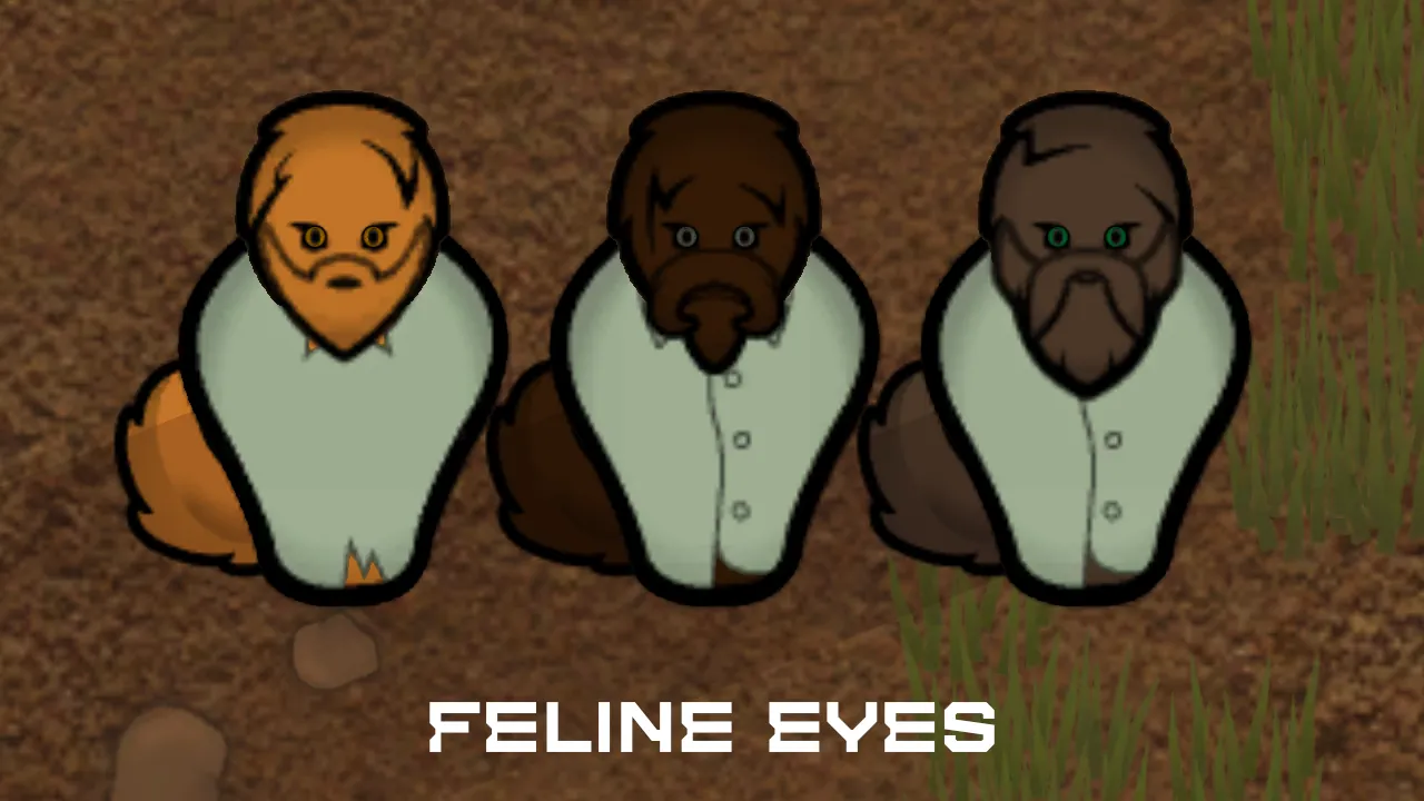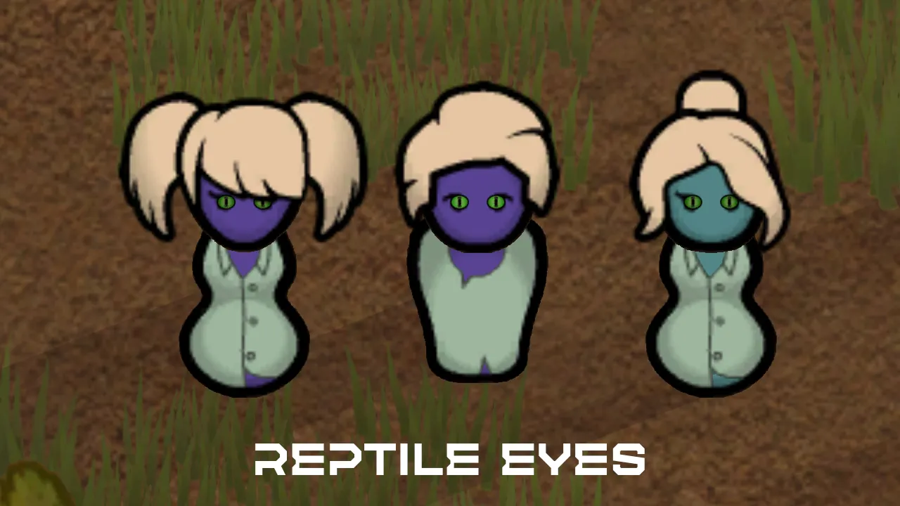This mod adds a range of custom eye color genes. Vanilla factions that don’t already have custom eyes will get eye colors based on their unique traits.