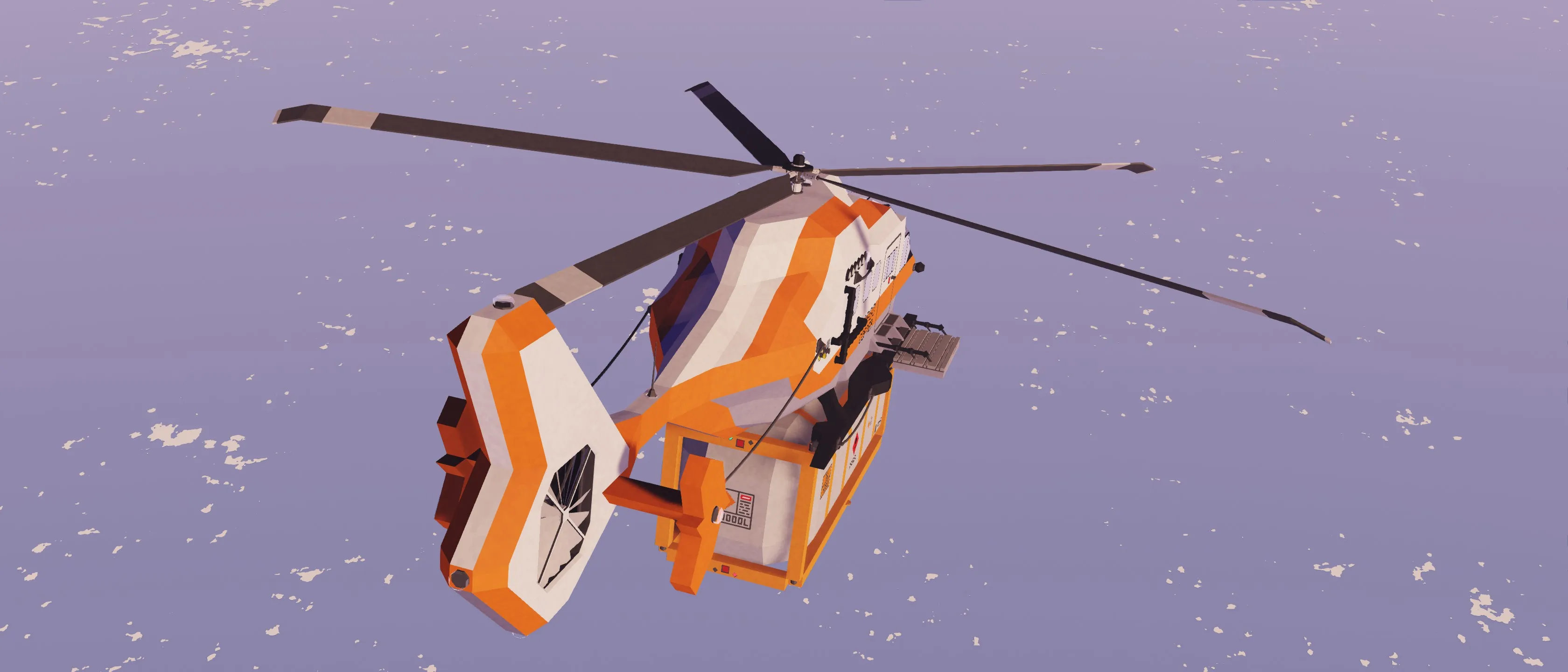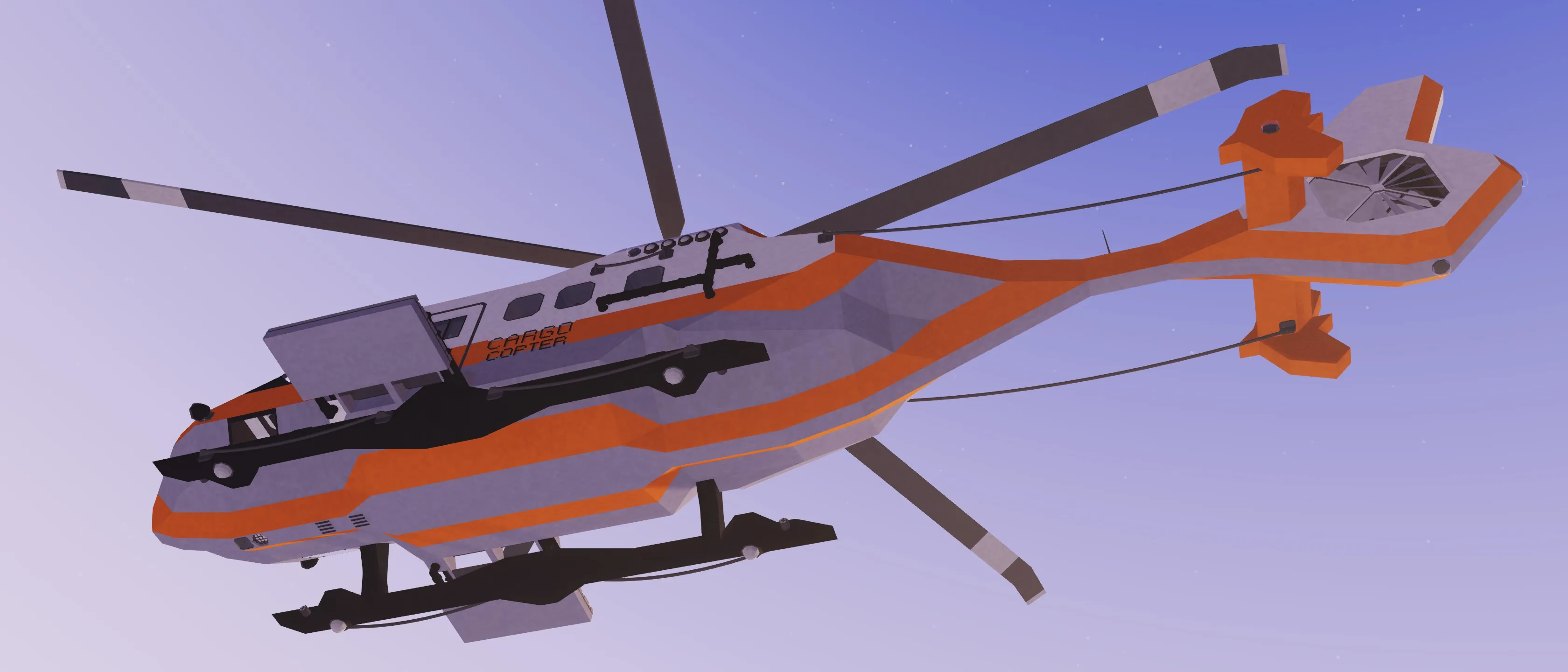 A rugged, pressurized heavy-lift helicopter built for long-range logistics and operations in hostile or extreme environments. Designed to carry 31 t+ of cargo, lock itself to surfaces with powerful anchors, and keep crew safe and breathable even when flooded. Stable, efficient and easy to operate — ideal for long hauls, rescue runs and heavy towing.