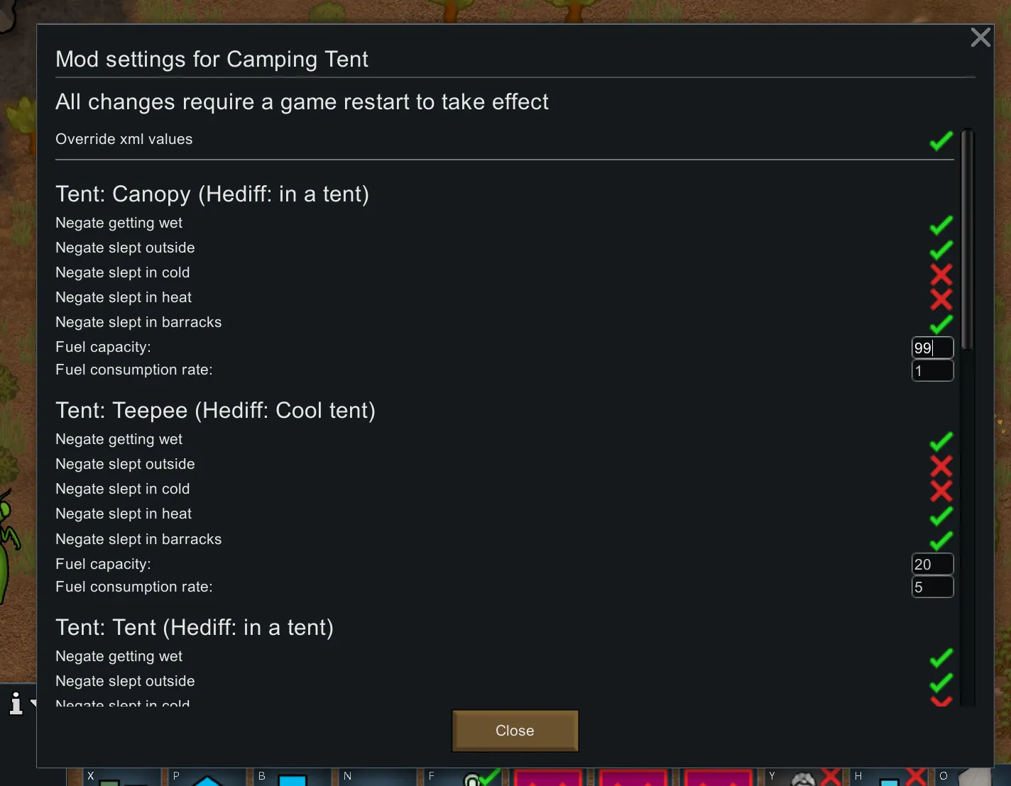 note: There status of the tent value has change but the description in workshop still the old one.