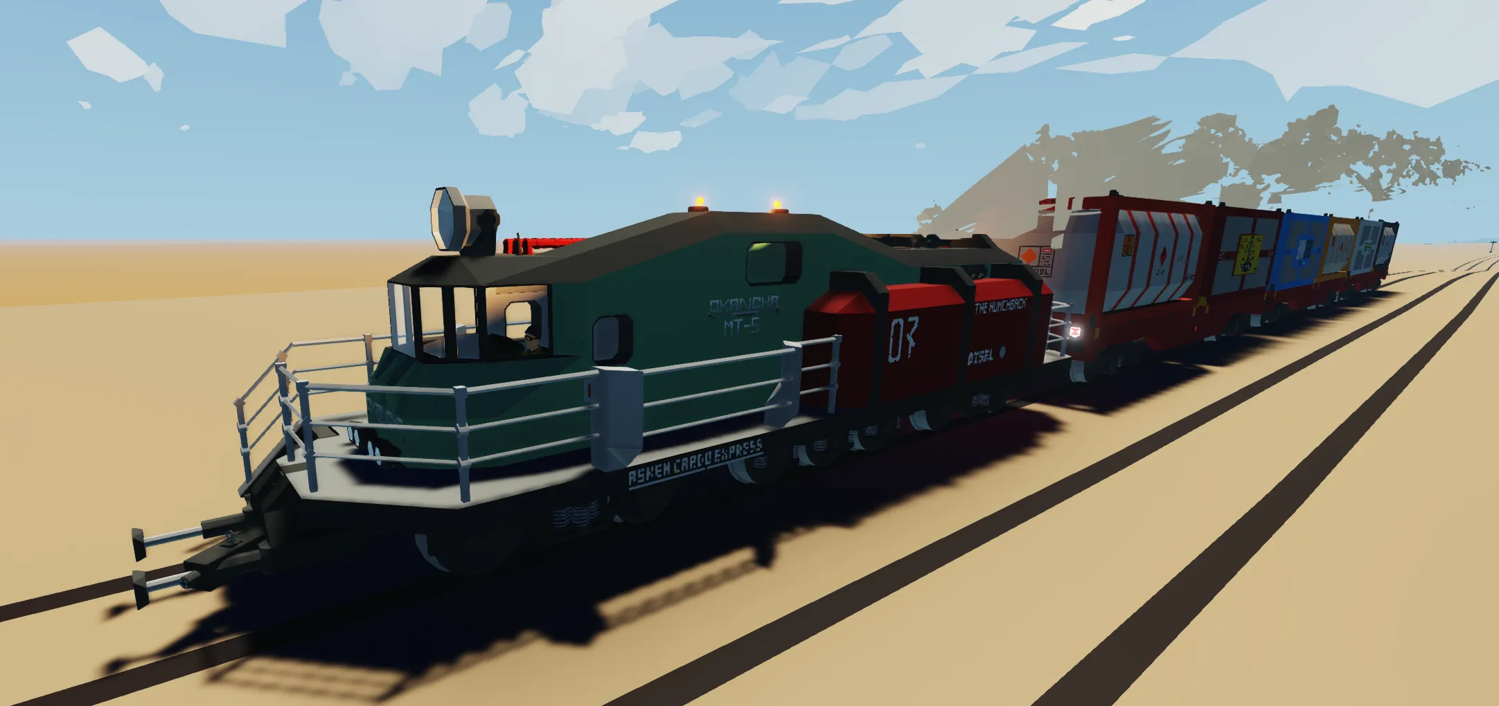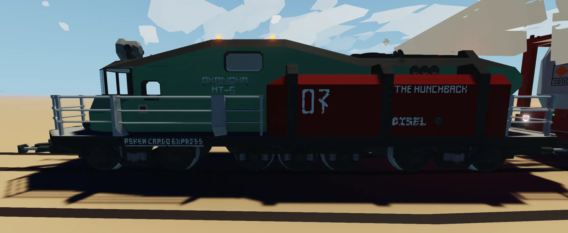 This is a standard Okanacha MT-5 freight train, informally nicknamed "Humpback" due to the distinctive shape of the train's roof, which serves as an extra berth.