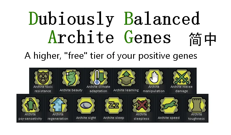 [b] Dubiously Balanced Archite Genes (可疑的超凡基因平衡) 的简中汉化包,请在原mod之后加载。[/b]