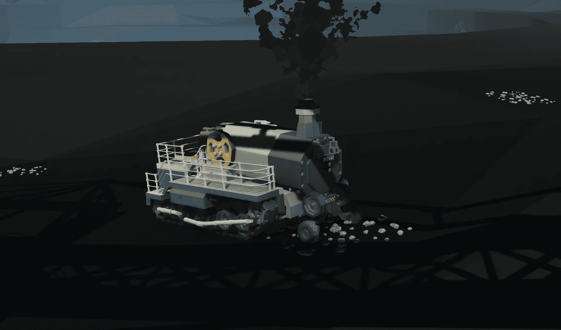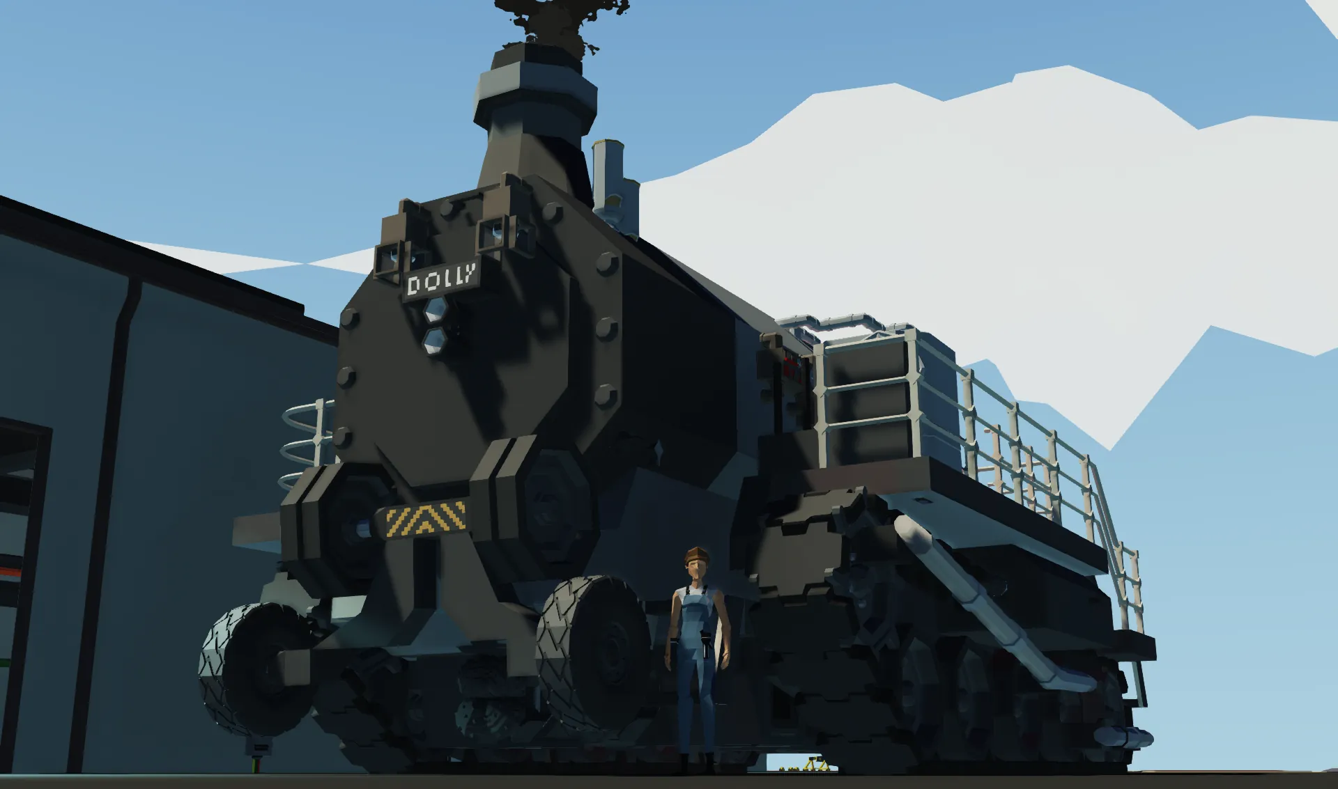 Dolly is a steampunk style mining vehicle that can perform in more or less any mining quarry though it is recommended to use for mining coal, gold, Uranium and iron. it has a maximum ore capacity of 918 and is fully powered by steam.