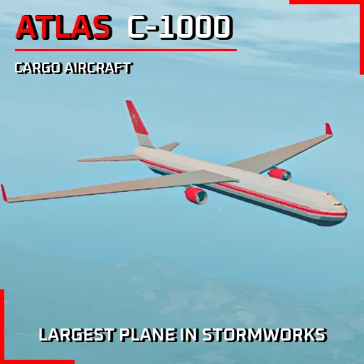 This, is Stormworks's largest plane. The Atlas C-1000. Constructed in 2025 by Enplo Industries, this aircraft is designed to carry the heaviest of cargo possible.