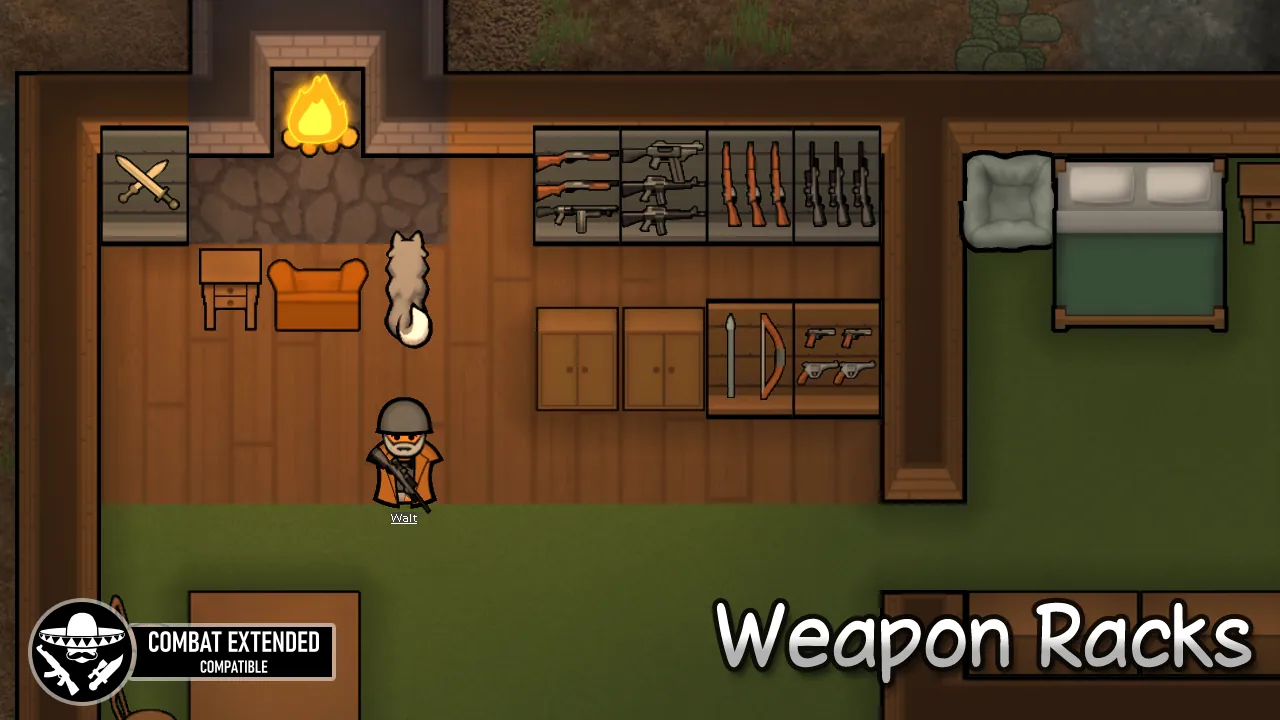 Weapon Racks are compatible with Combat Extended, and CE ammo can both be stored in Weapon Racks and visually adjusted in mod settings.
