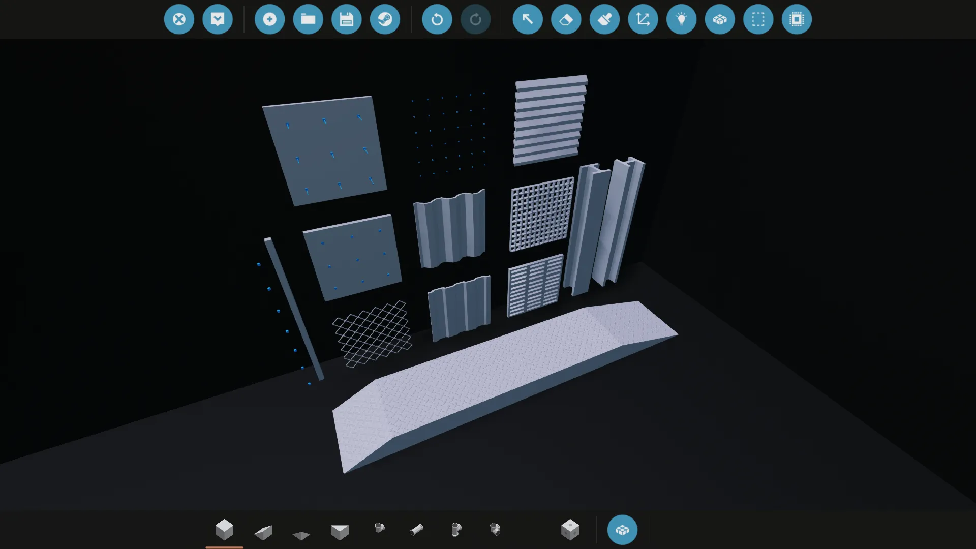 A grip metal / diamond pattern detail. Can be attached on top of other blocks. Also has variants for the 1x2 and 1x4 wedges.