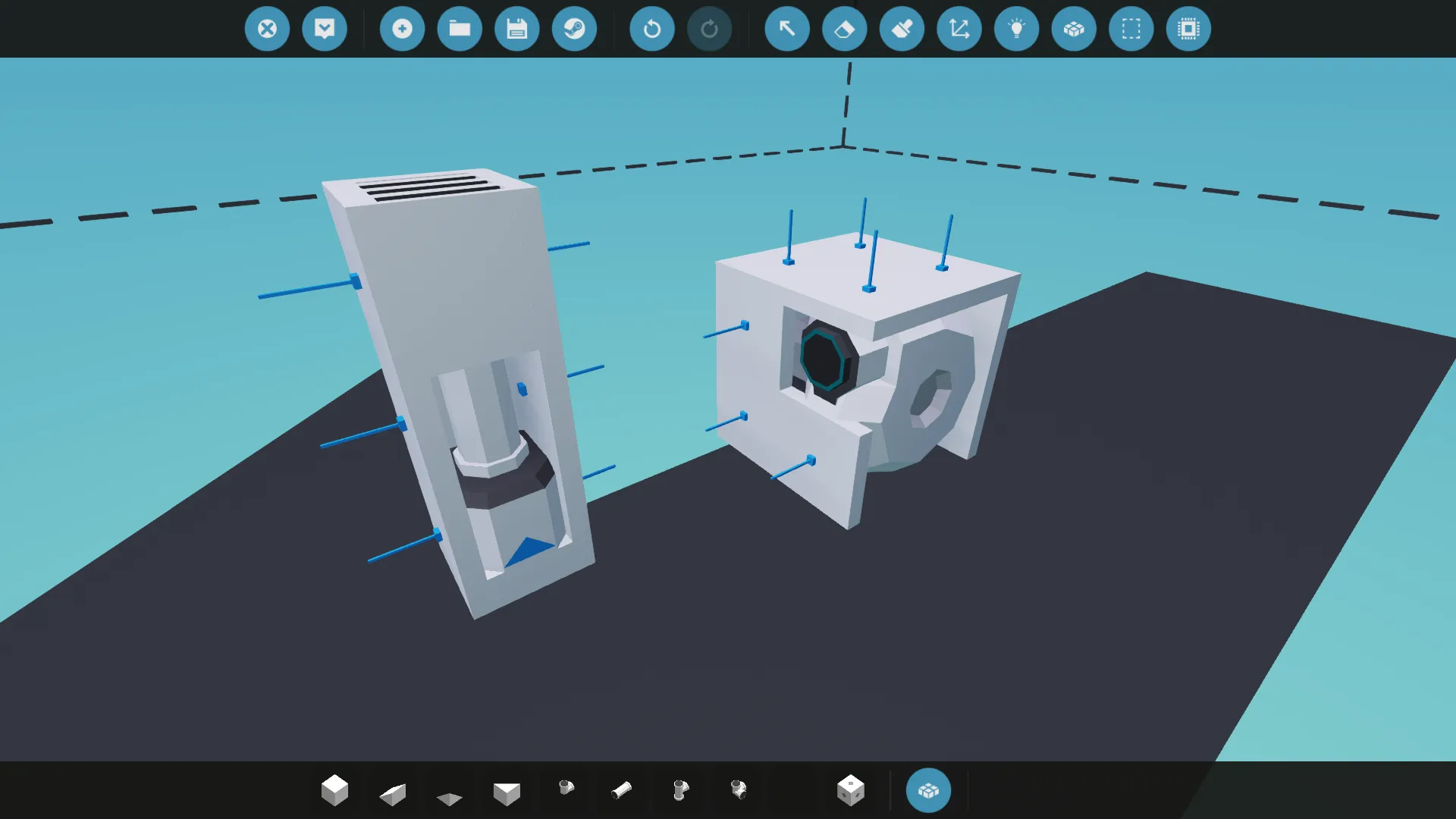A few variants of a weight bolt. Can be attached to other blocks. Does not have physics. Can be used to make vehicles (or sub-bodies) heavier, which is helpful for things like robot arms, custom suspension and cranes.